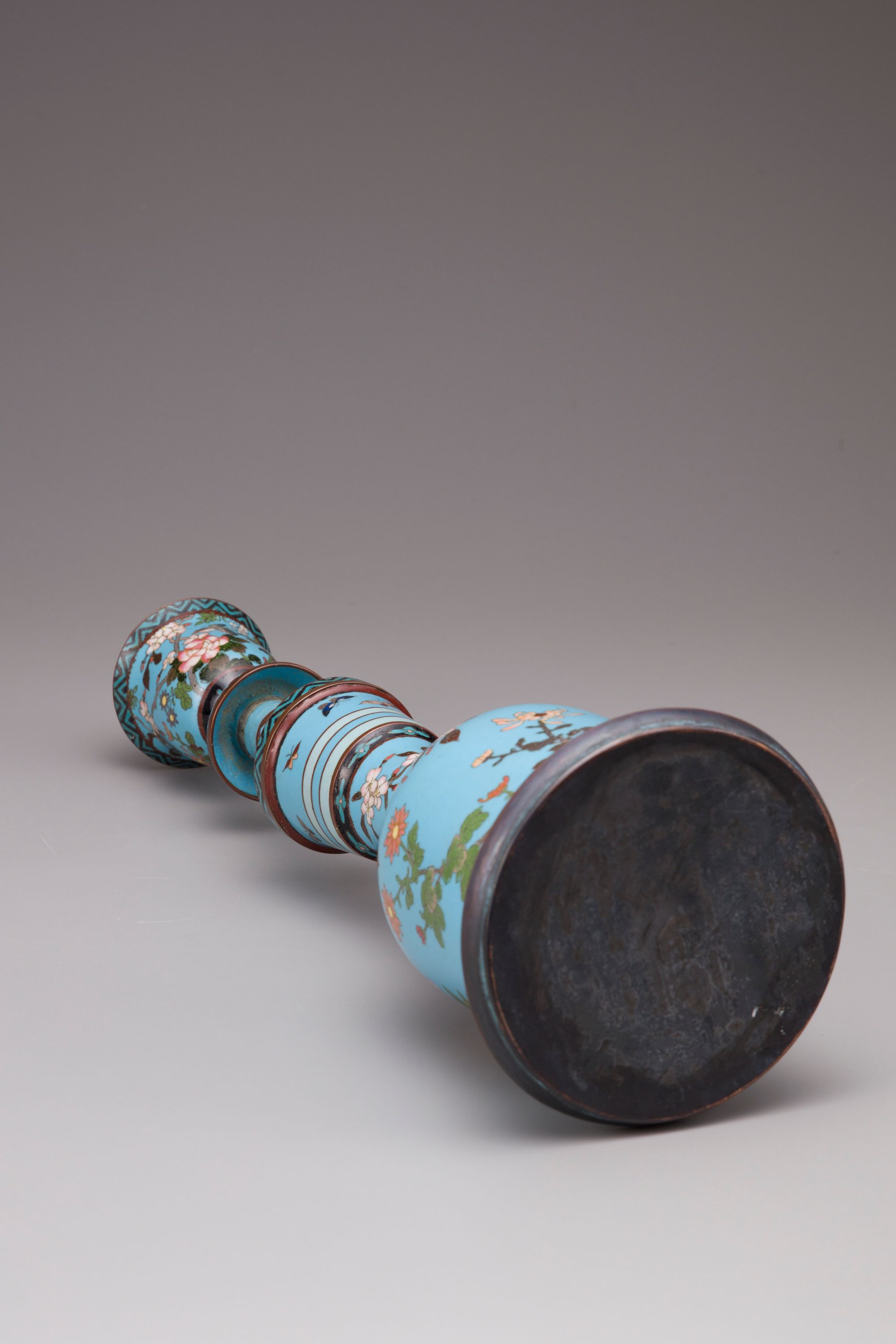 Decorated with butterflies, birds, peony, prunus and wisteria all on a blue ground. 41.5 cm.
