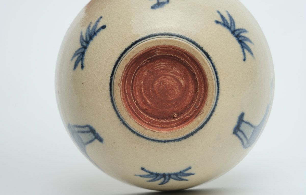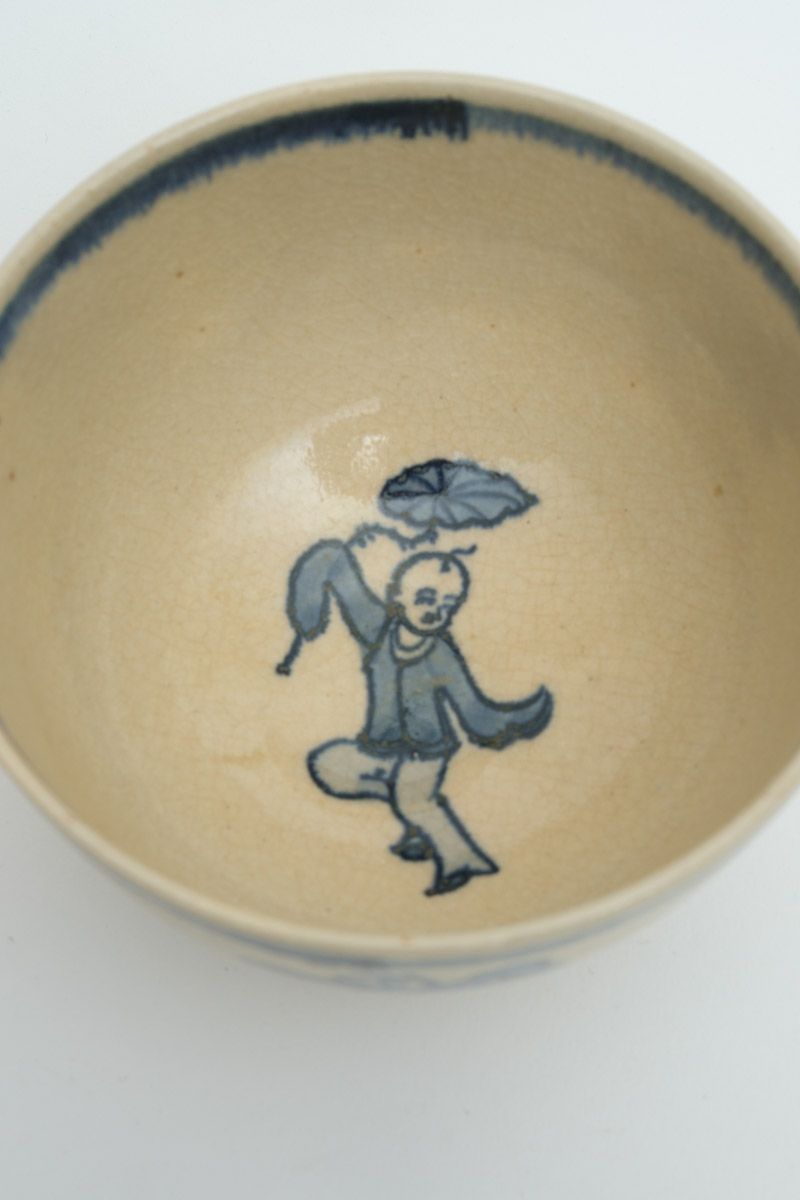 Rectangular kamakurabori lacquerware box with a tea-set in the style of tea-master Sen no Rikyū (Rikyū chabako) containing: napkin (kin); tea-bowl (chawan); stoneware tea caddy (chaire); teaspoon (chashaku); chrysanthemum shaped incense box (kōgo); lacquerware tea-whisker holder with lid (chasendō); a natsume tea caddy in the shape of a pumpkin and a green glazed napkin holder (kintō). The box has as usual a tray (kakego) with a hole for the holder of the tea-whisker. The box is decorated with carved abstract floral motives.