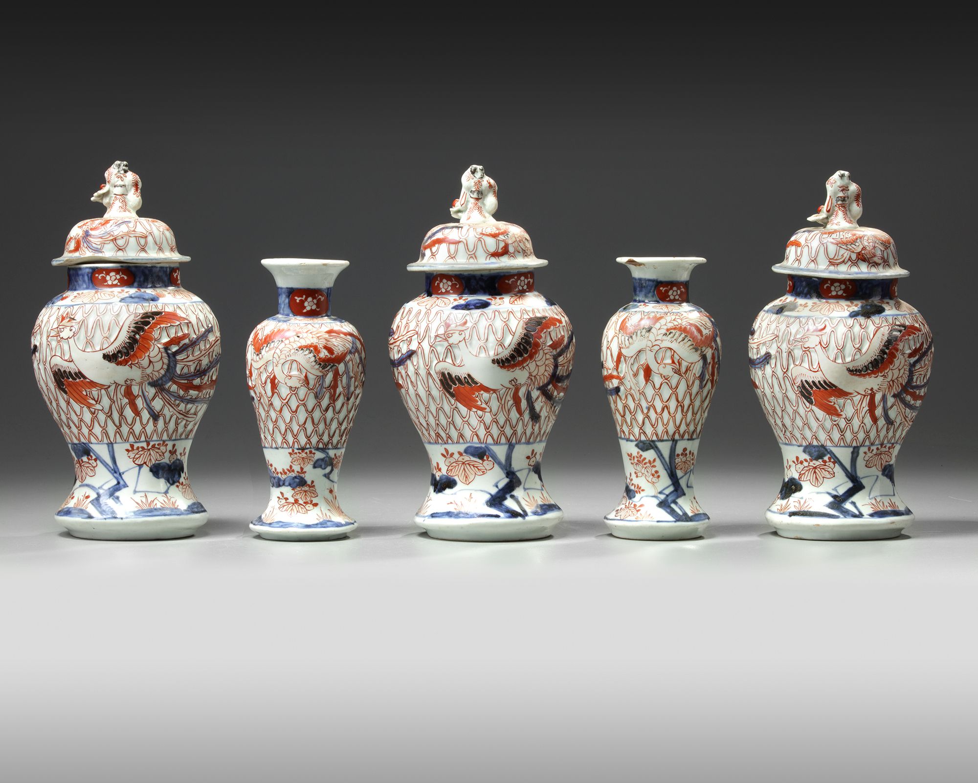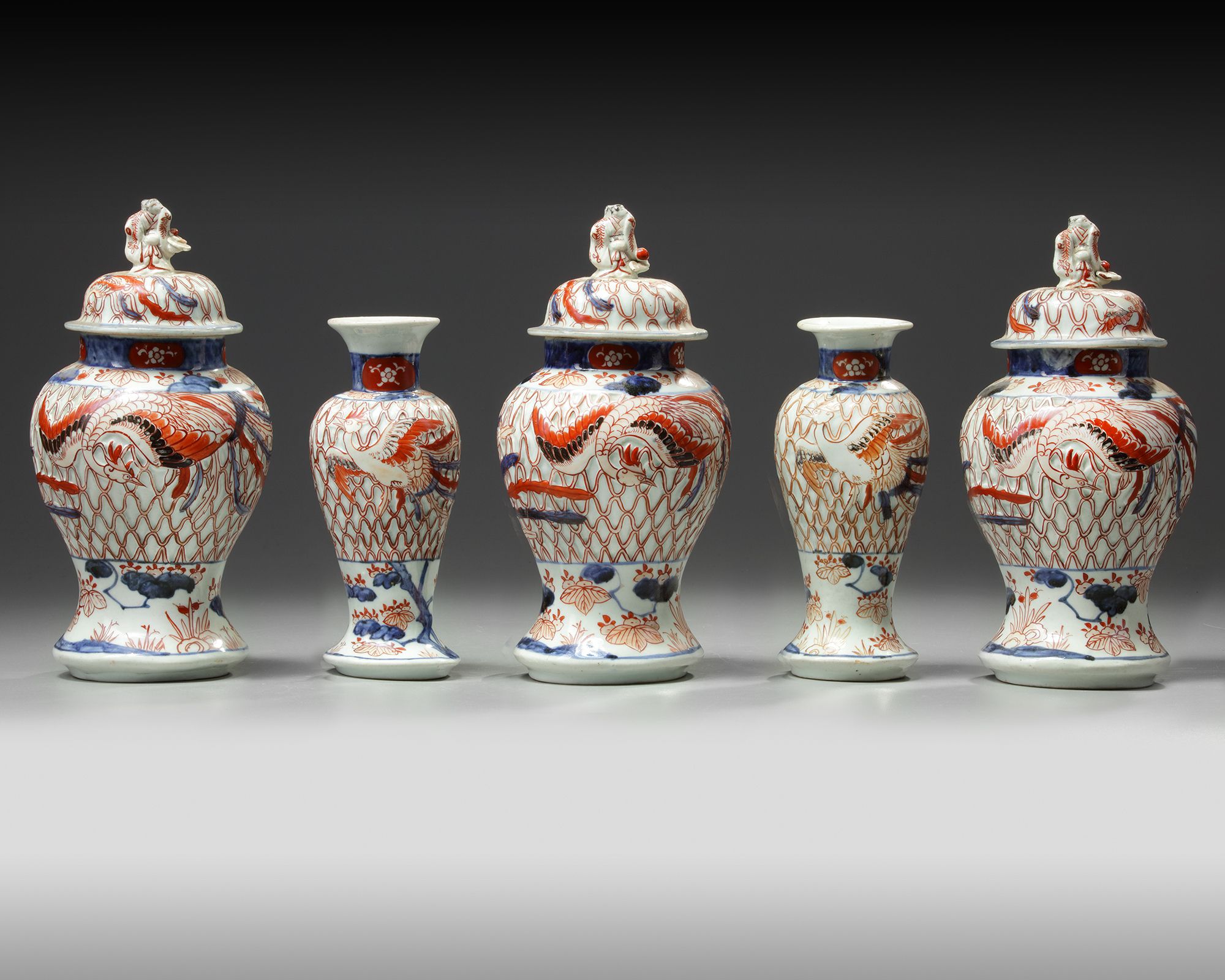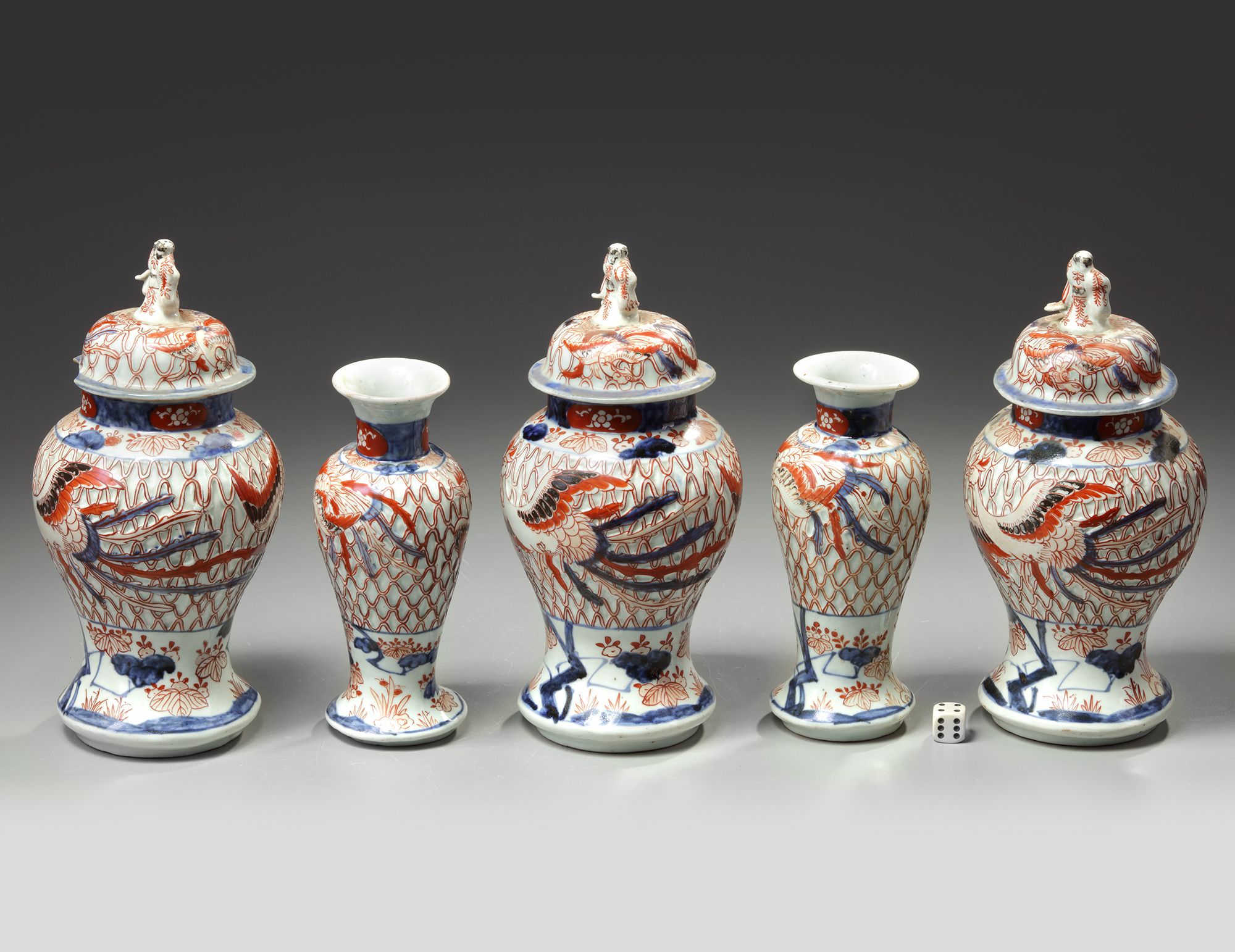 All decorated with phoenixes, the covers of the jars with figures as a knob. 24.5 cm.