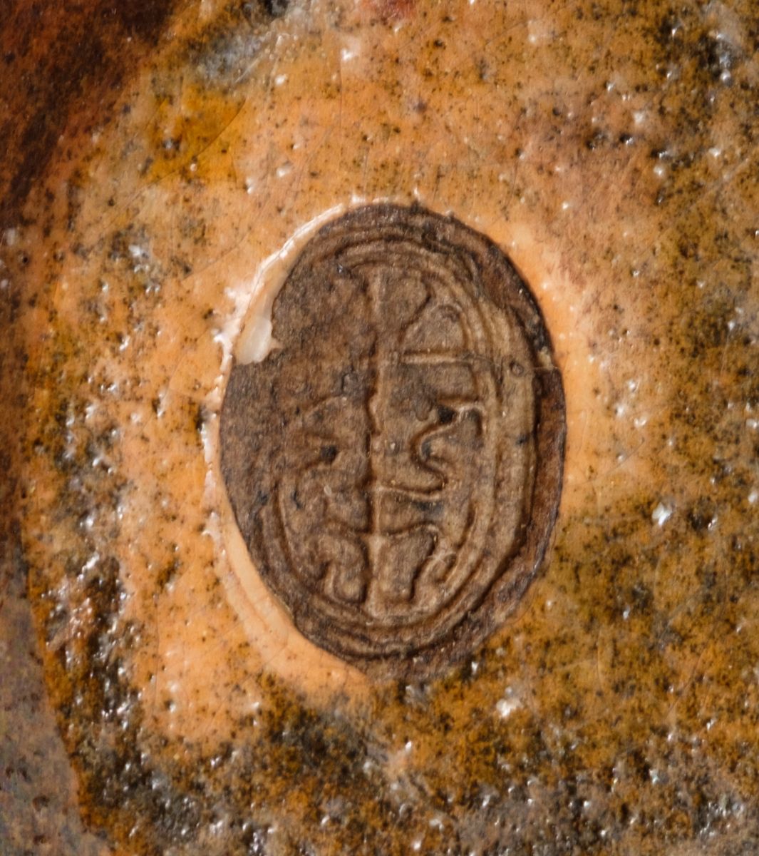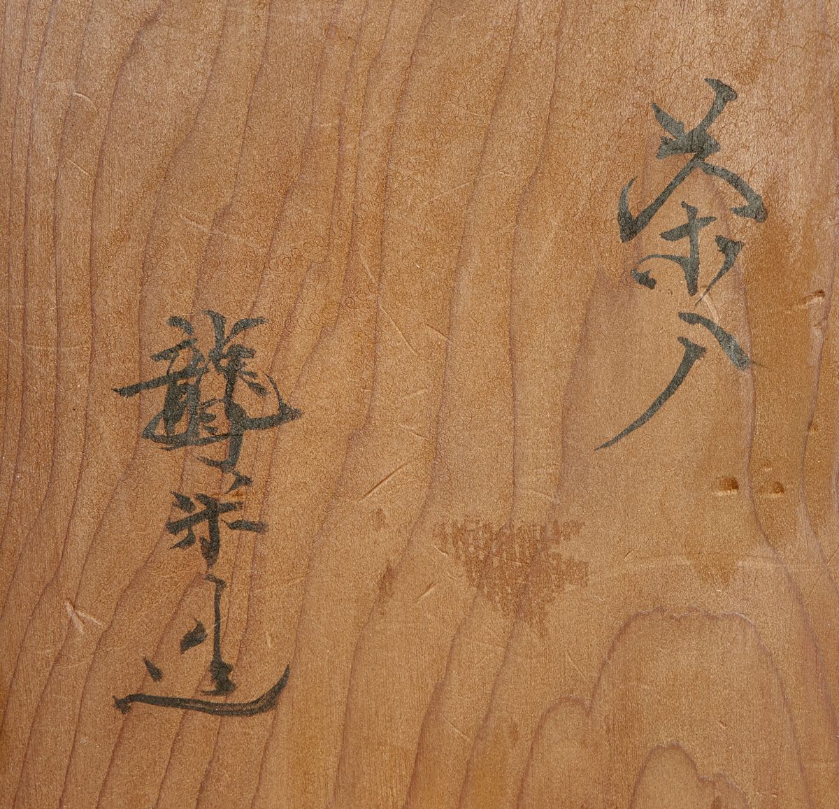 A small stoneware tea caddy (cha’ire) with an ivory cover attributed to Aoki Mokubei (1767-1833), bottom mark: Mokubei. With a brocade cover. In a box.