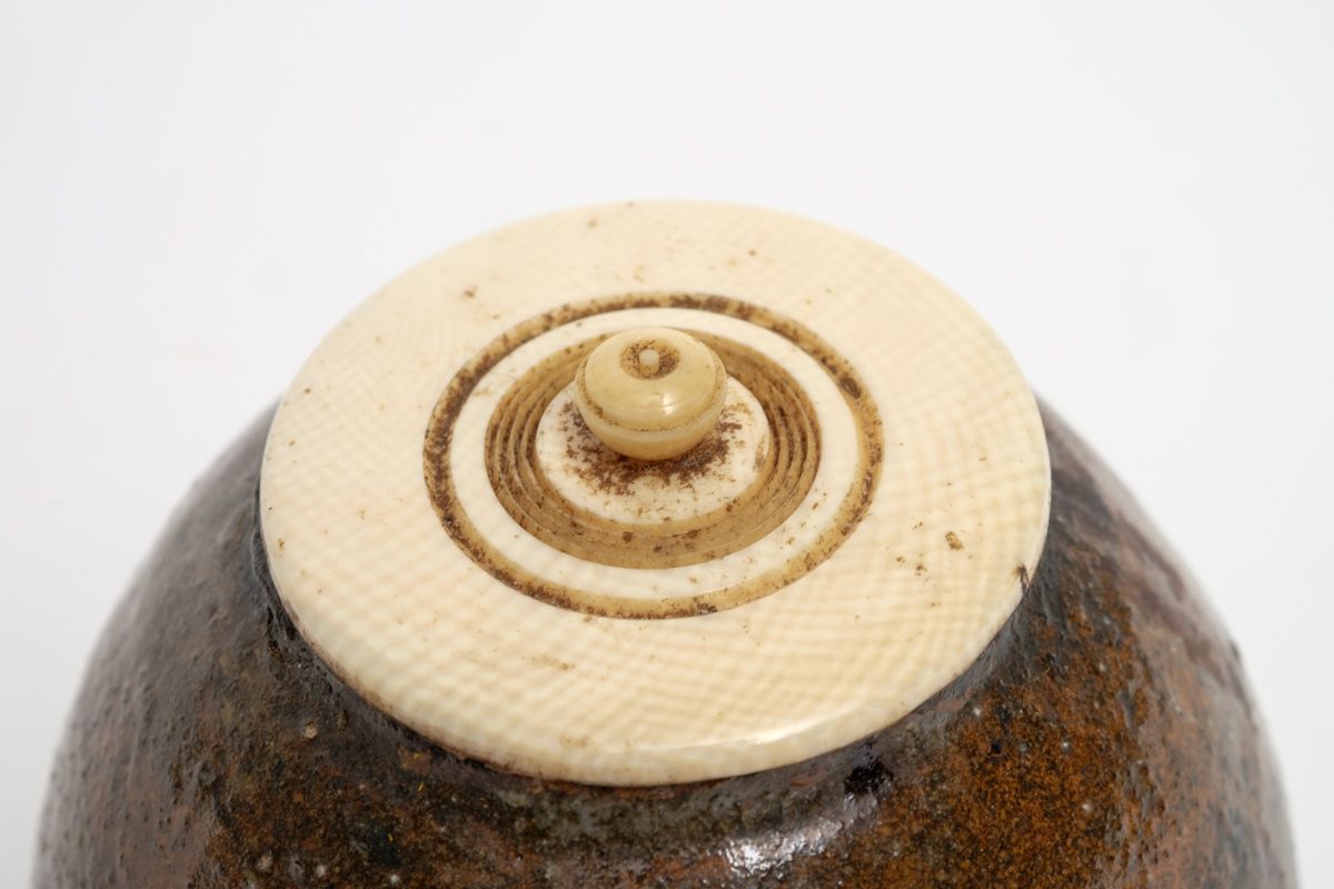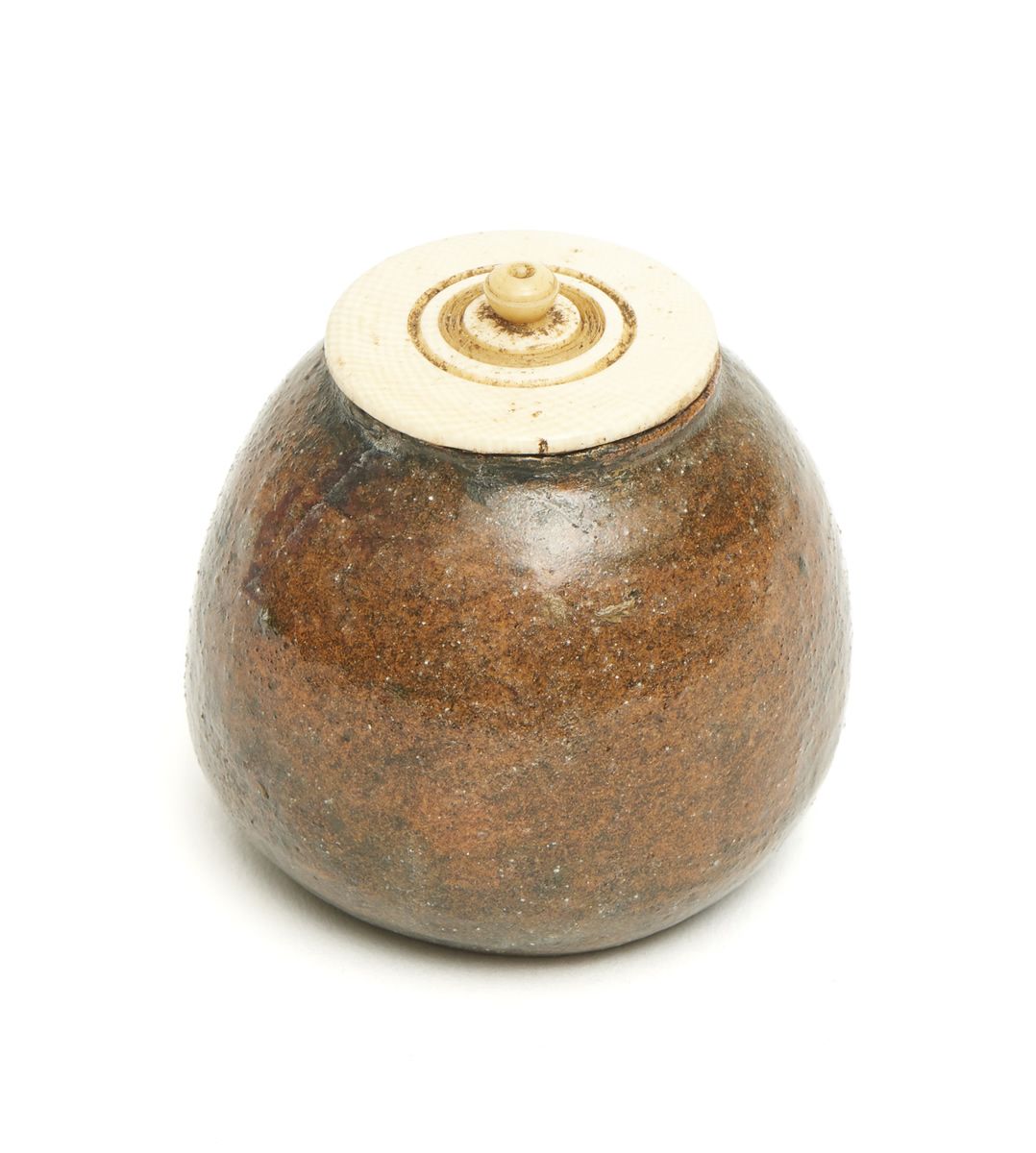 A small stoneware tea-caddy (cha`ire) with ivory cover attributed to Aoki Mokubei