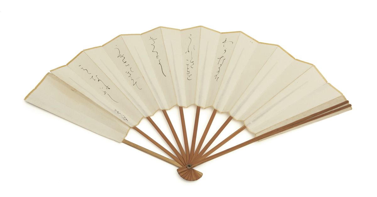 Bamboo and paper folding fan (ōgi) inscribed by the Buddhist nun Otagaki Rengetsu (1791-1875) with one of her waka-poems:
