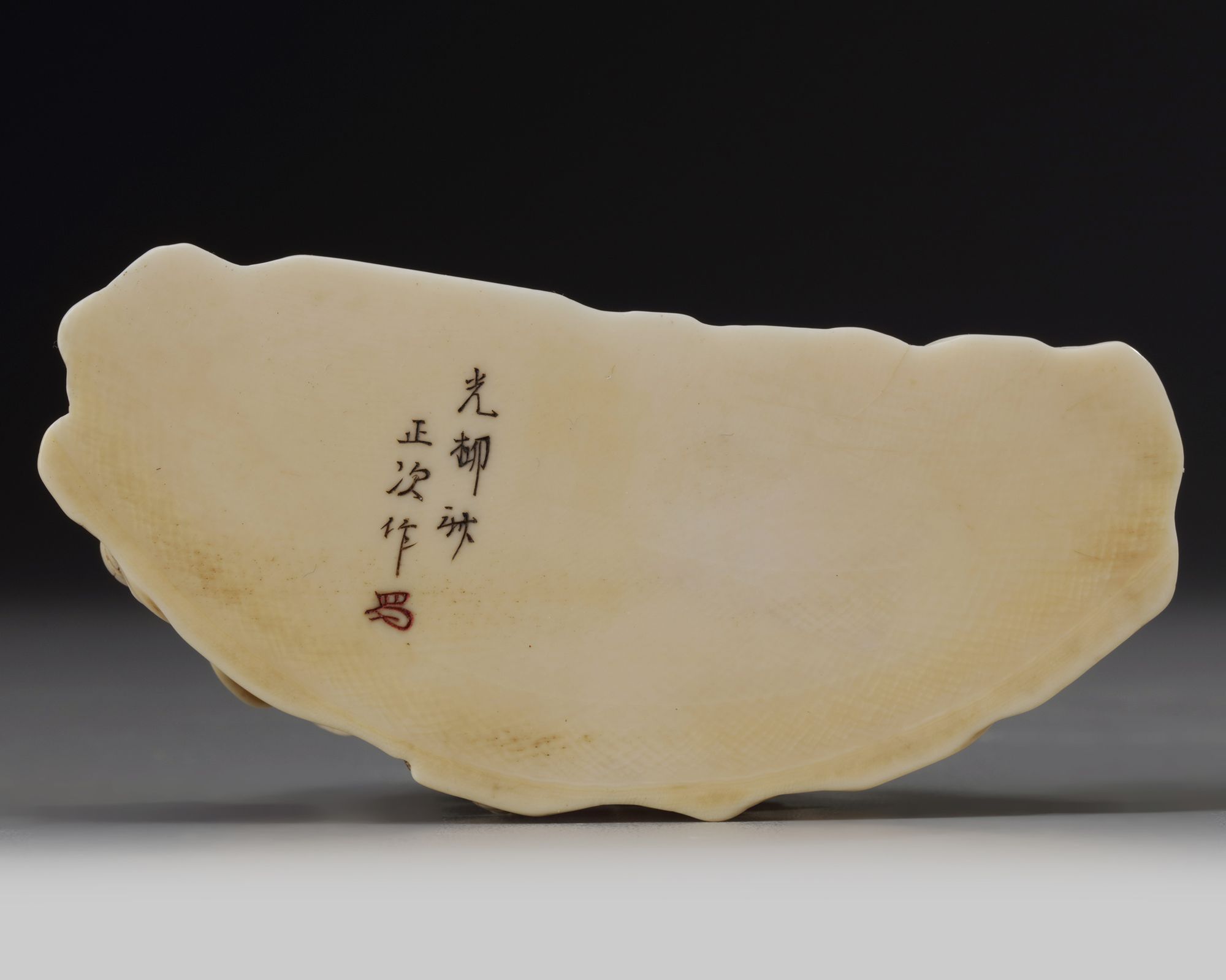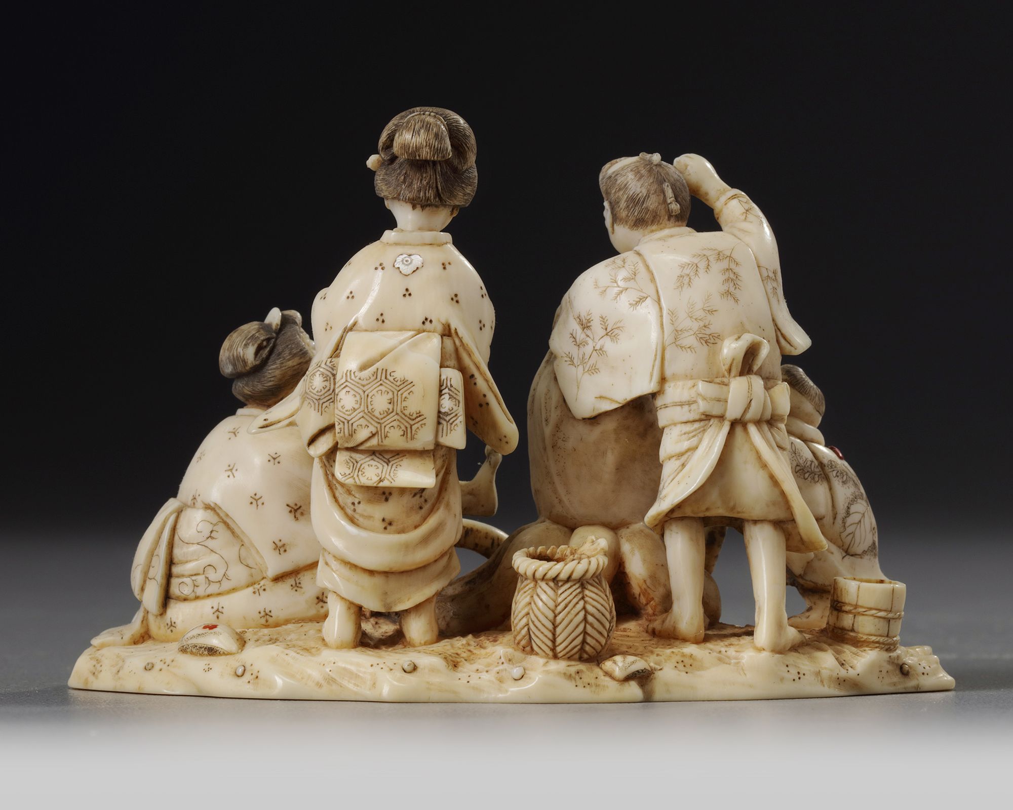 A Japanese ivory okimono of a group of four on the beach