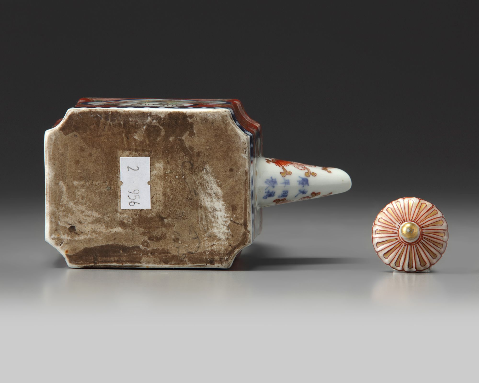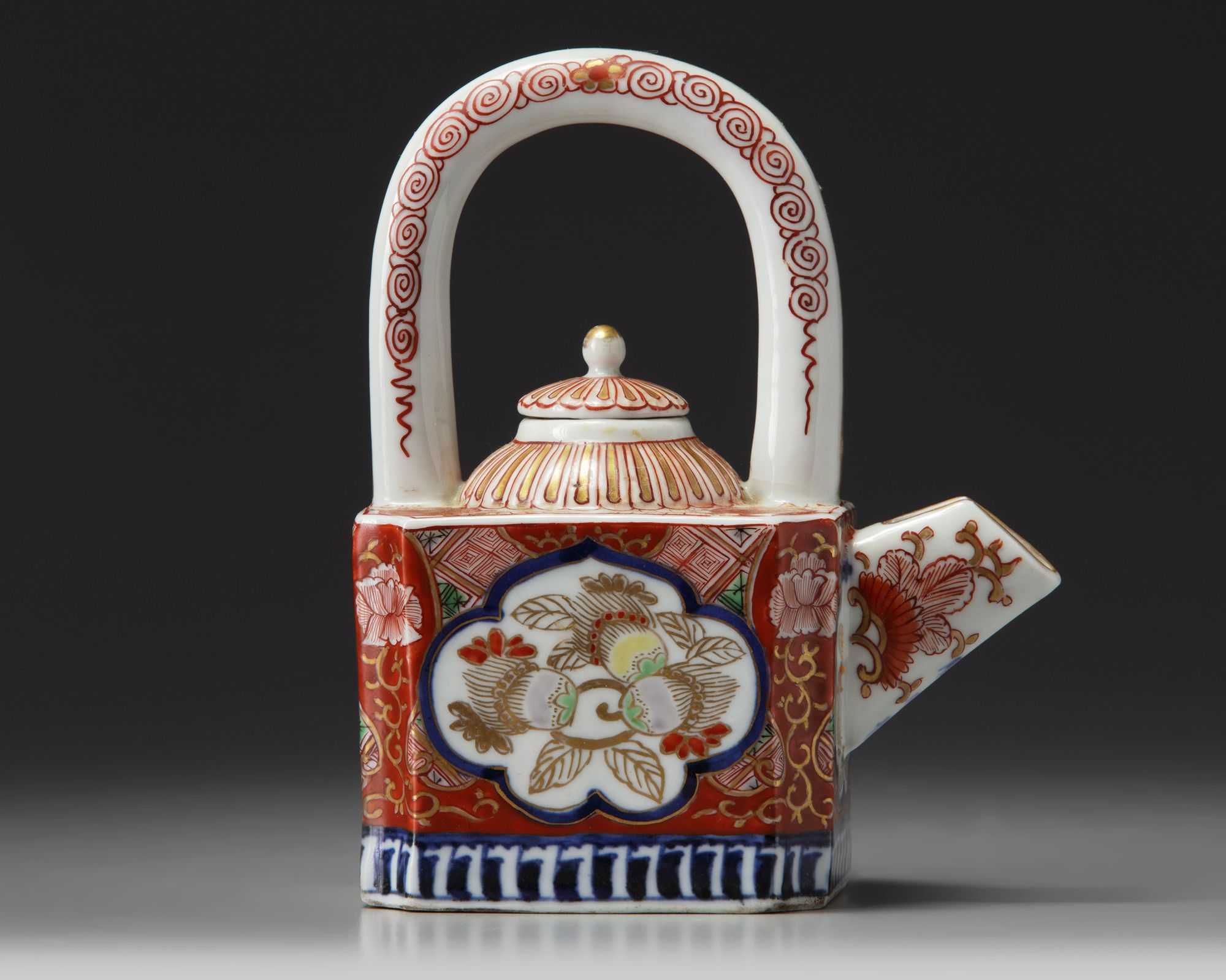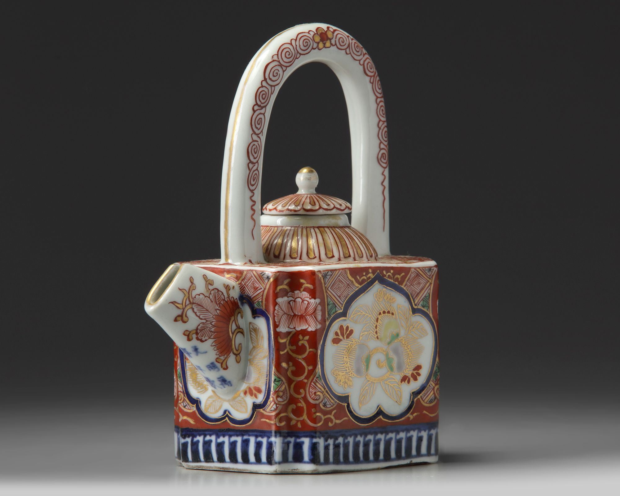 A JAPANESE IMARI-ARCH-HANDLES TEAPOT AND COVER, 19TH CENTURY