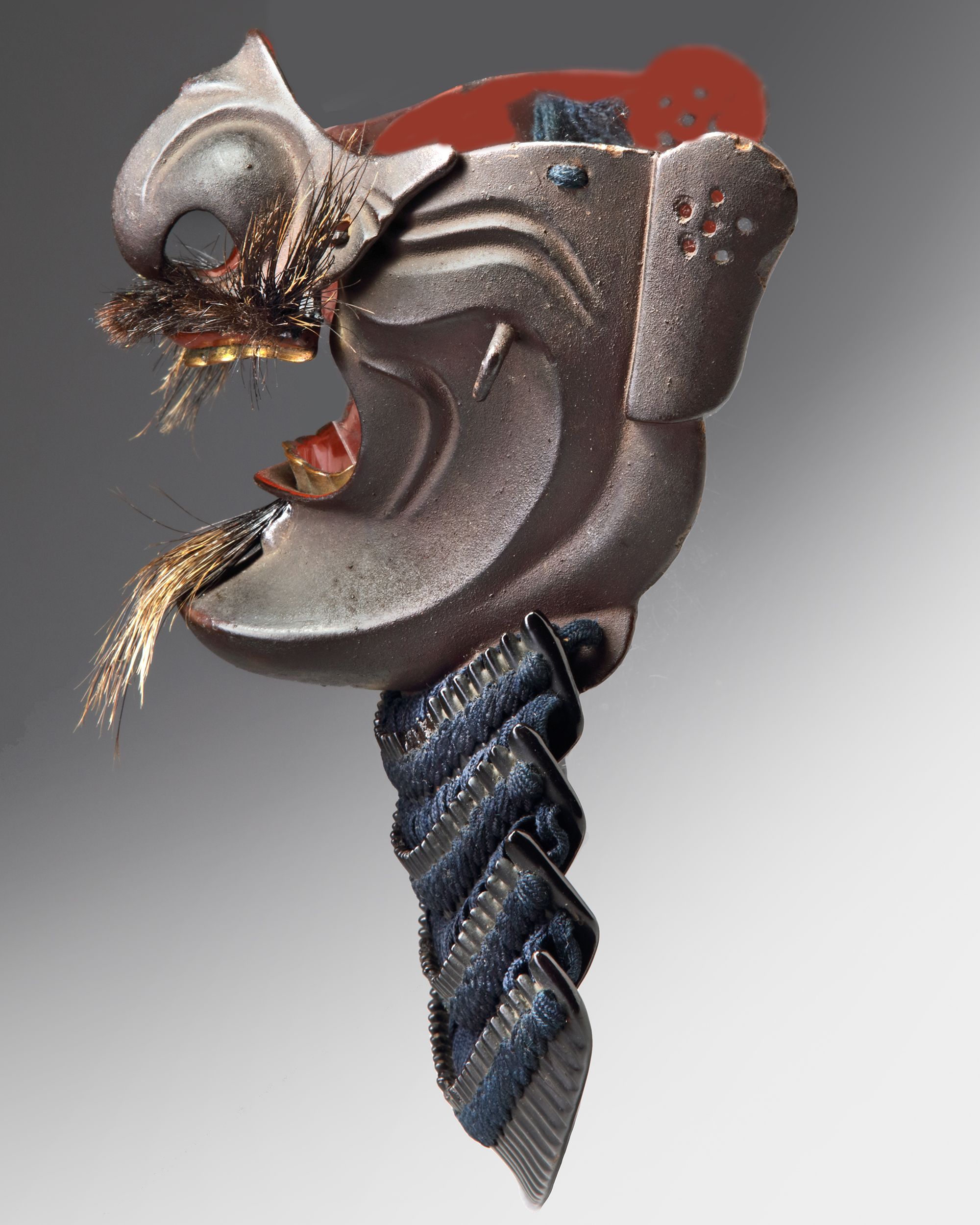 A JAPANESE DARK IRON 'ANGRY OLD MAN' FACIAL MASK (MEN YOROI)