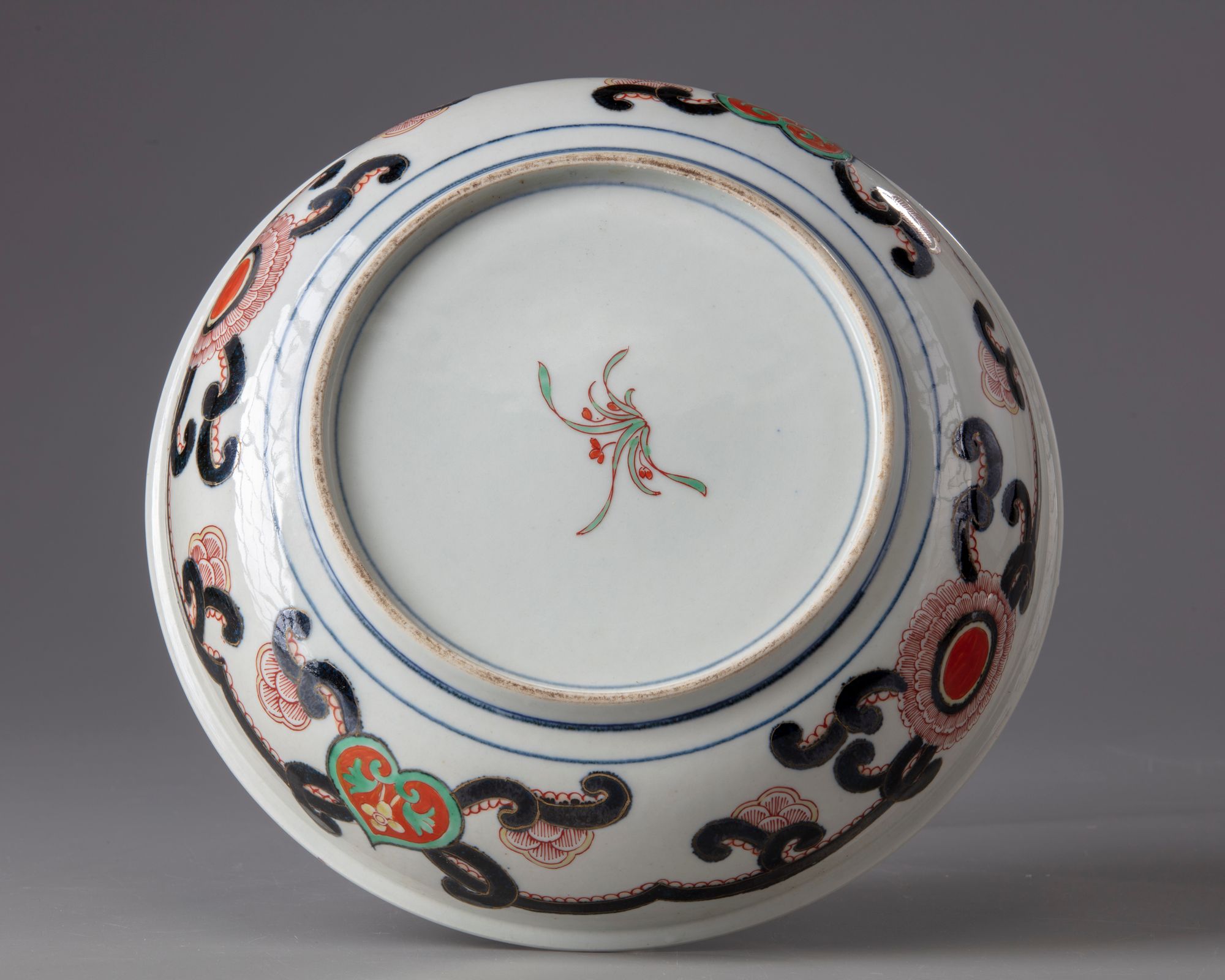 A Japanese Imari bowl decorated to the centre with gilt roundels, diaper band of flowers.