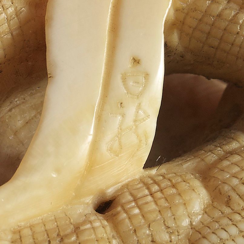 The only recorded netsuke of the subject by Hakuryu was in the Fraser collection, sold at Sotheby's London, 20th November 1961, lot 28, to E.E. Simmons, resold by the same auctioneers, 28th April 1970, lot 35. Good condition.