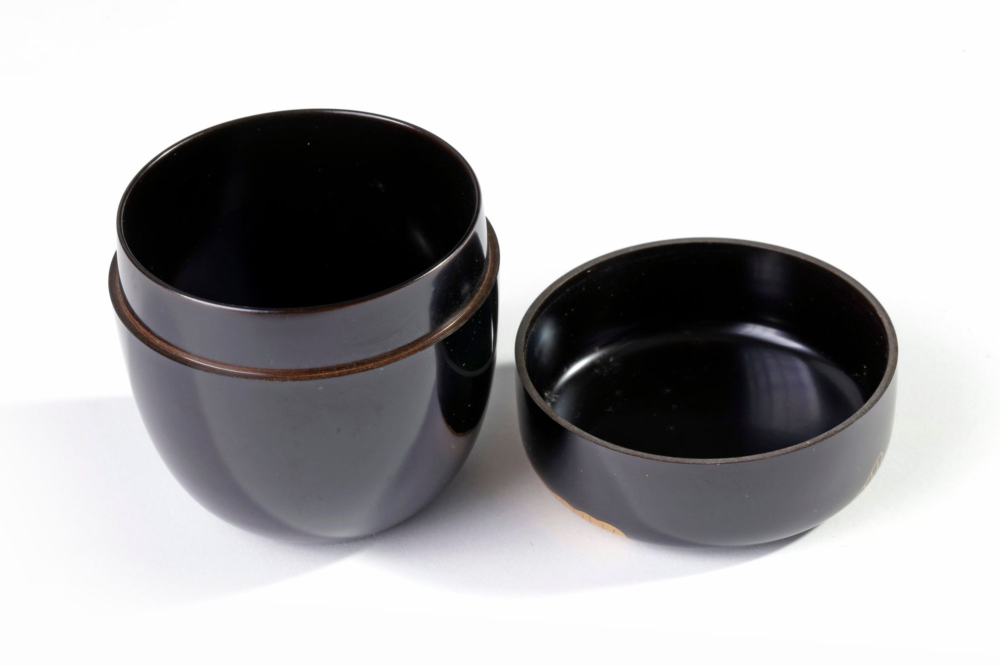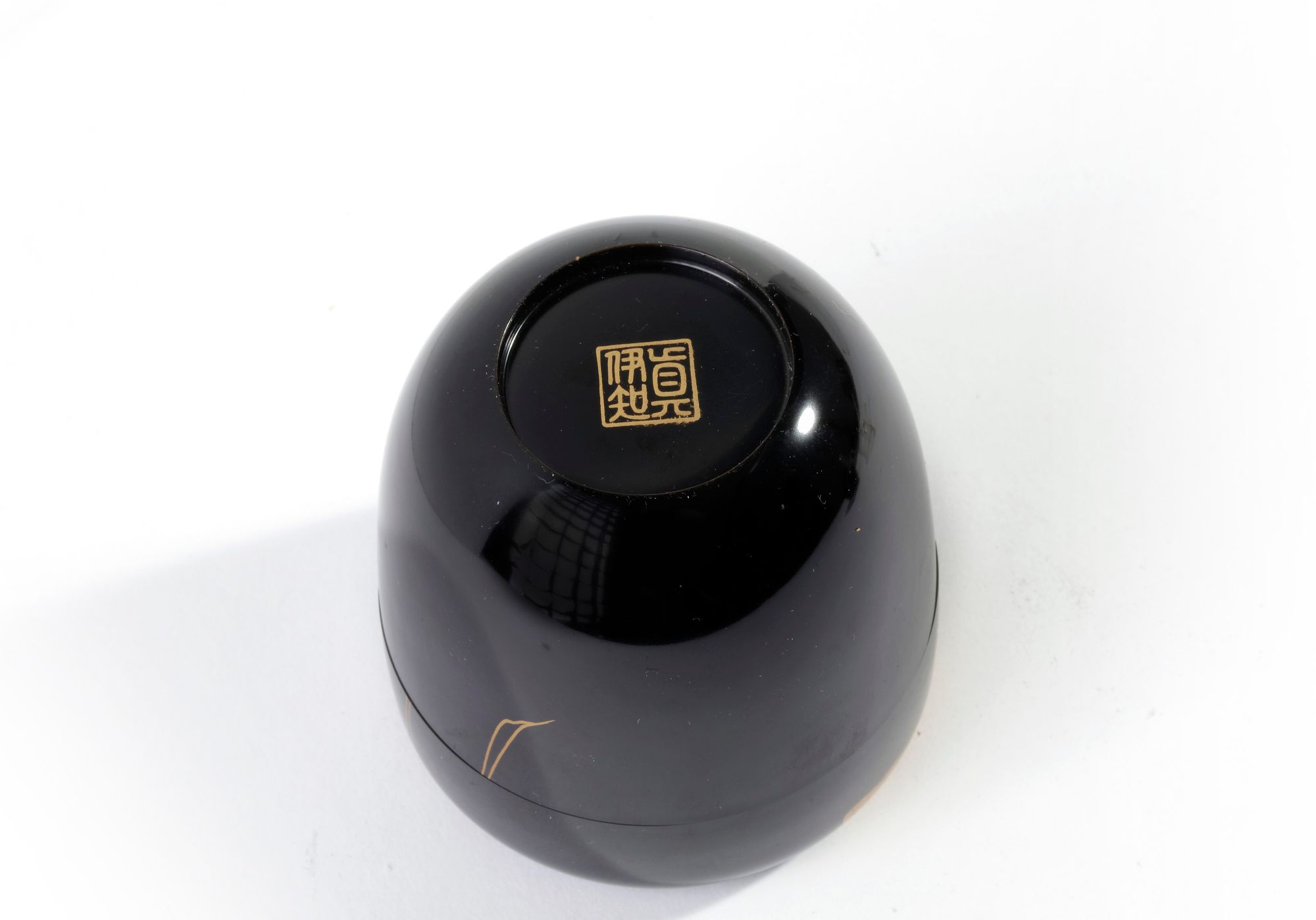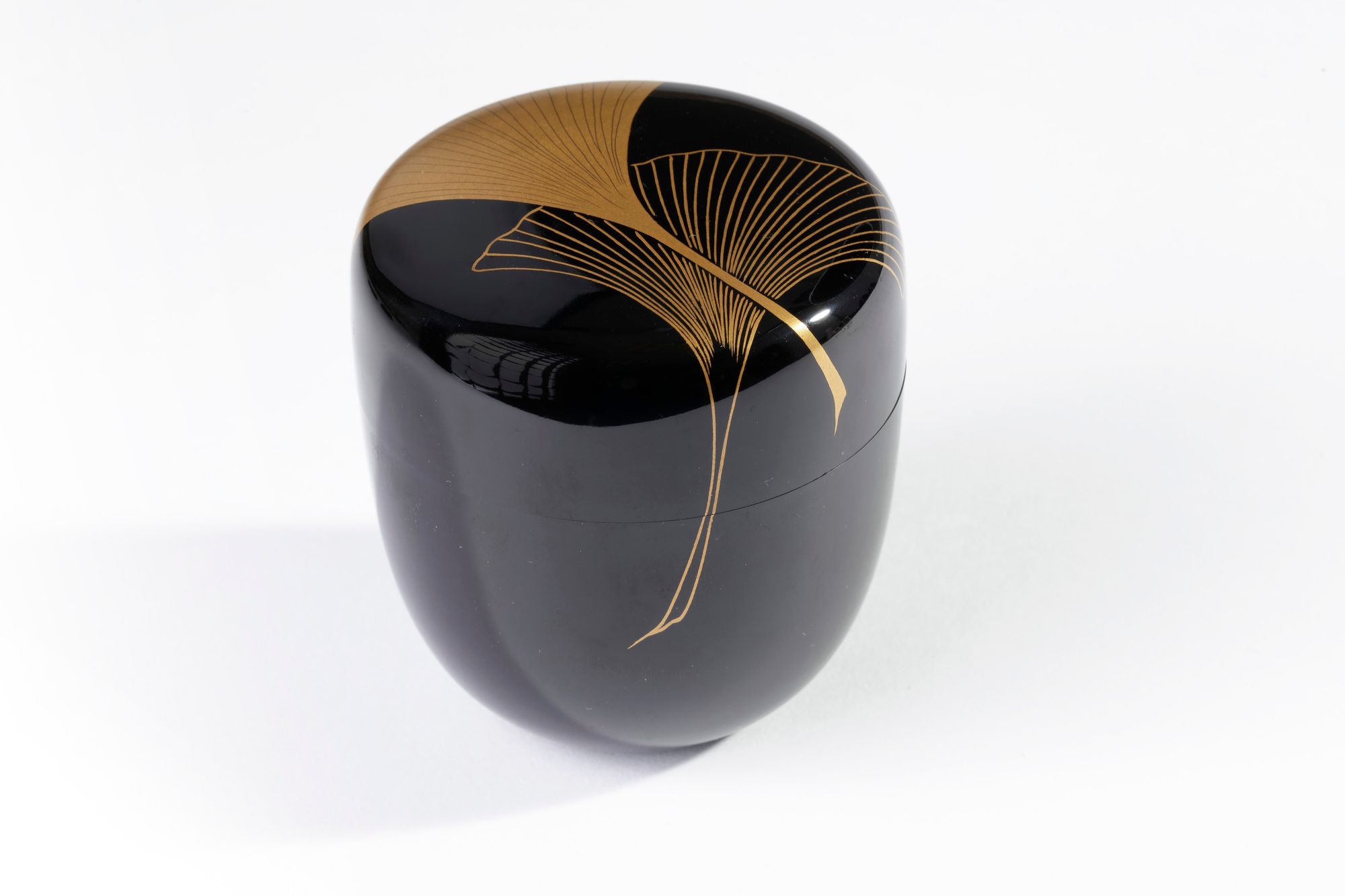 A Japanese gold Lacquered wooden Tea Caddy with box, decorated in gold.
