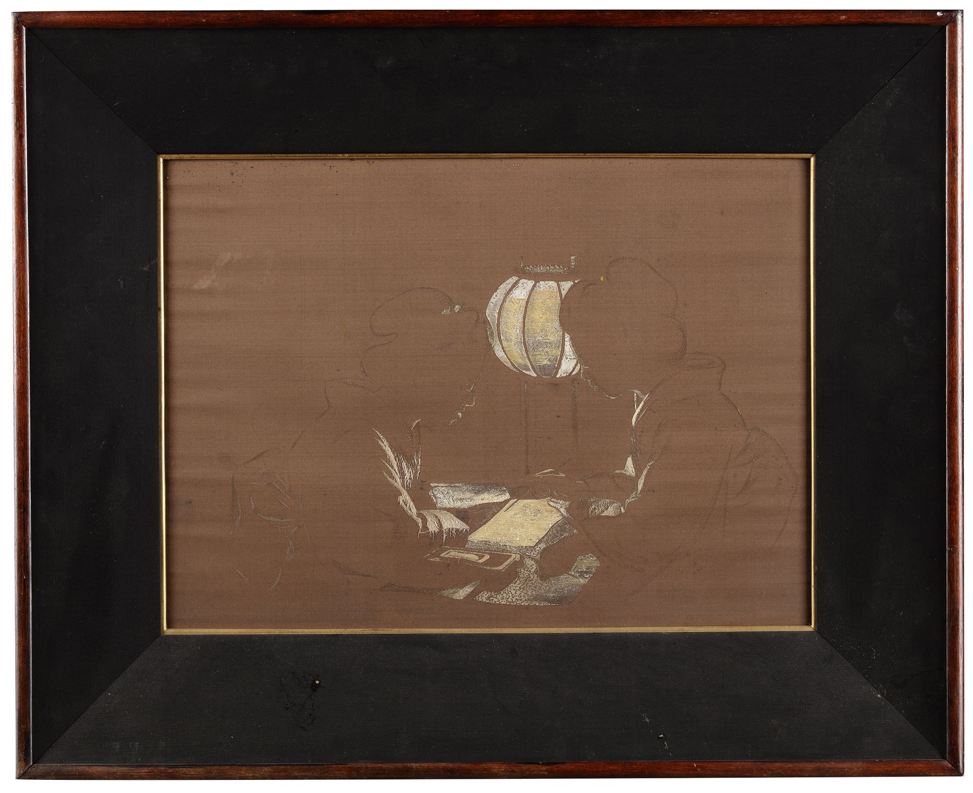 A Japanese framed silk brocade depicting two ladies