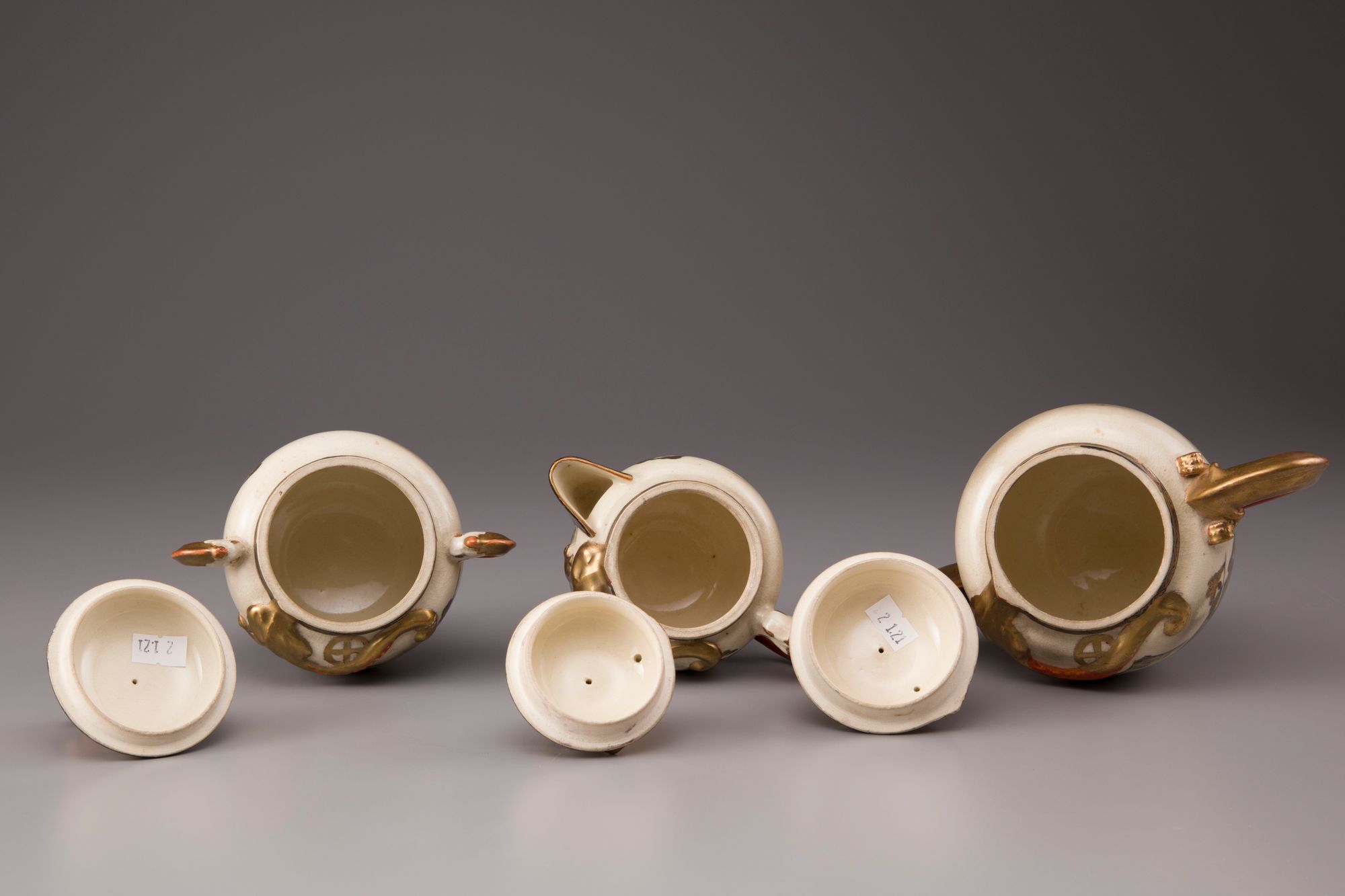 Soft porcelain with a relief decoration of dragons, the surfaces covered with a continuous landscape scenes with three Samurai, two with swords drawn.