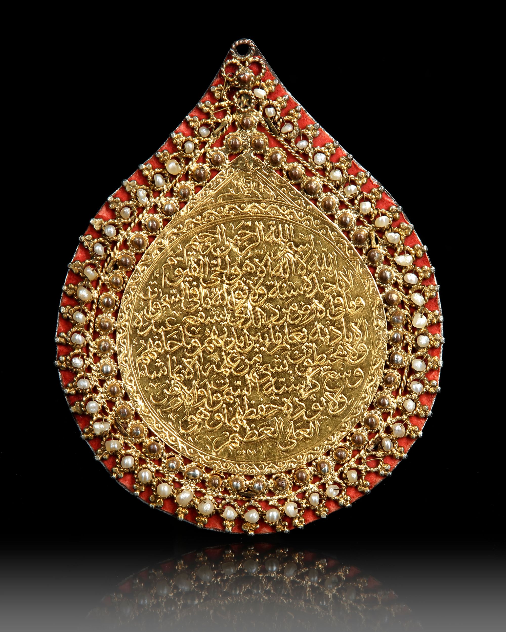 AN OTTOMAN GOLD PENDANT WITH SEED PEARL DECORATION, TURKEY, 19TH CENTURY