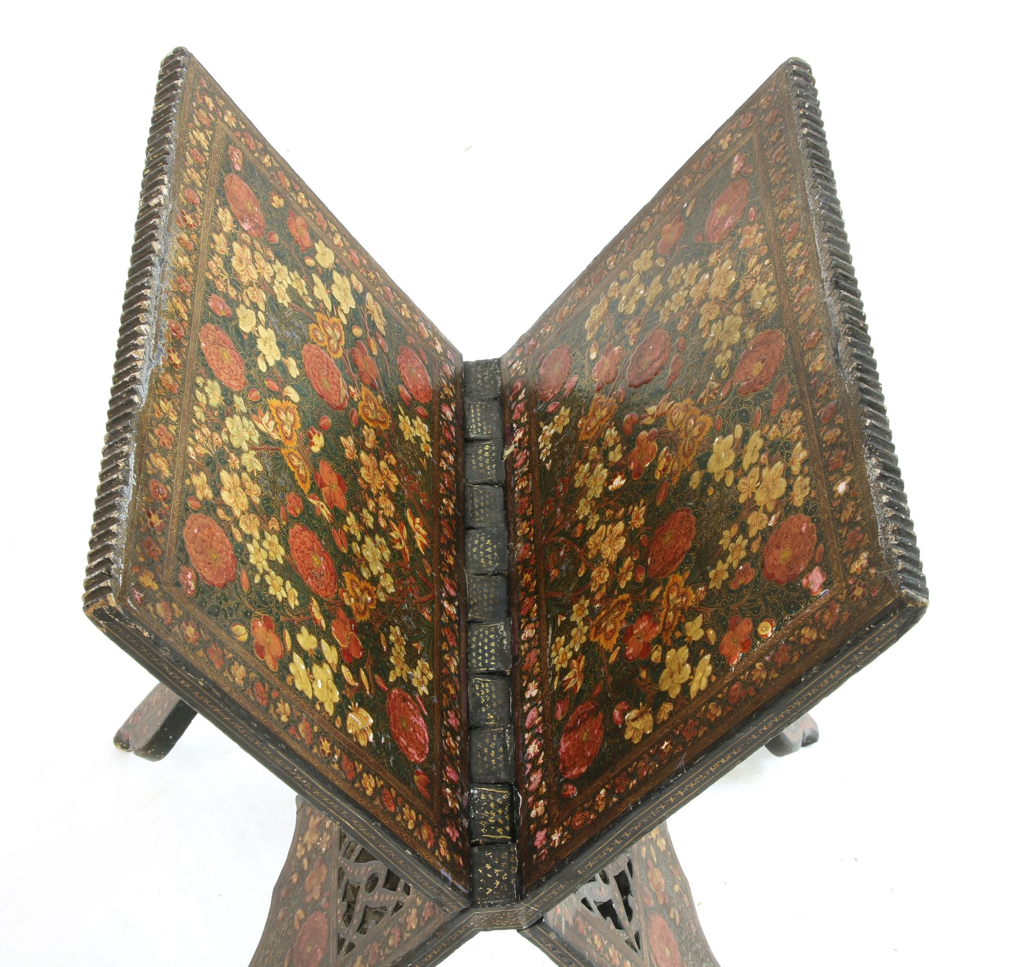 A LAQUER PAINTED QURAN STAND, KASHMIR, 19TH CENTURY