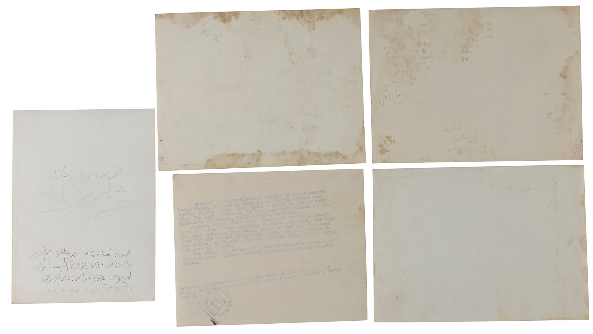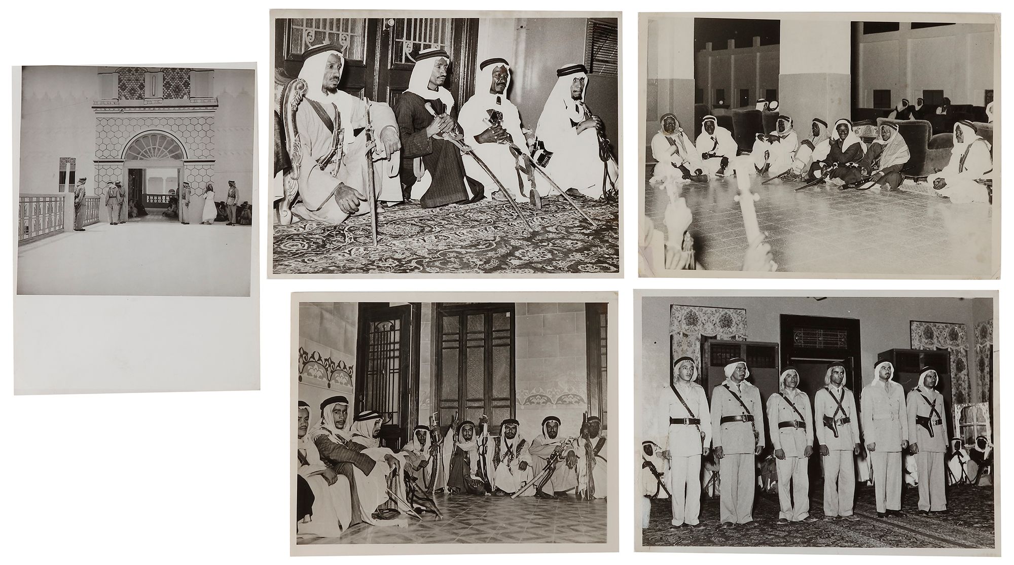The Saudi Arabian Royal Guard is an unit in the Saudi military forces. Originally an independent military force, the Royal Guards were incorporated into the Armed Forces since its inception until 1953. Not to be confused with the SANG. The Royal Guards still retained their unique mission of protecting the House of Saud. Units of the Royal Guard protect the King of Saudi Arabia at all times. The Royal Guards report directly to the King and for security reasons maintain a separate communications network from the regular Army. Members of the Royal Guard Regiment often wear the flowing white thaub (robe) and white kaffiyeh and qhutrah (traditional Arab headgear of skullcap and scarf). Royal Guardsmen wear bright green berets when in conventional uniforms. 13 by 18 cm. - 14.5 by 19.5 cm.