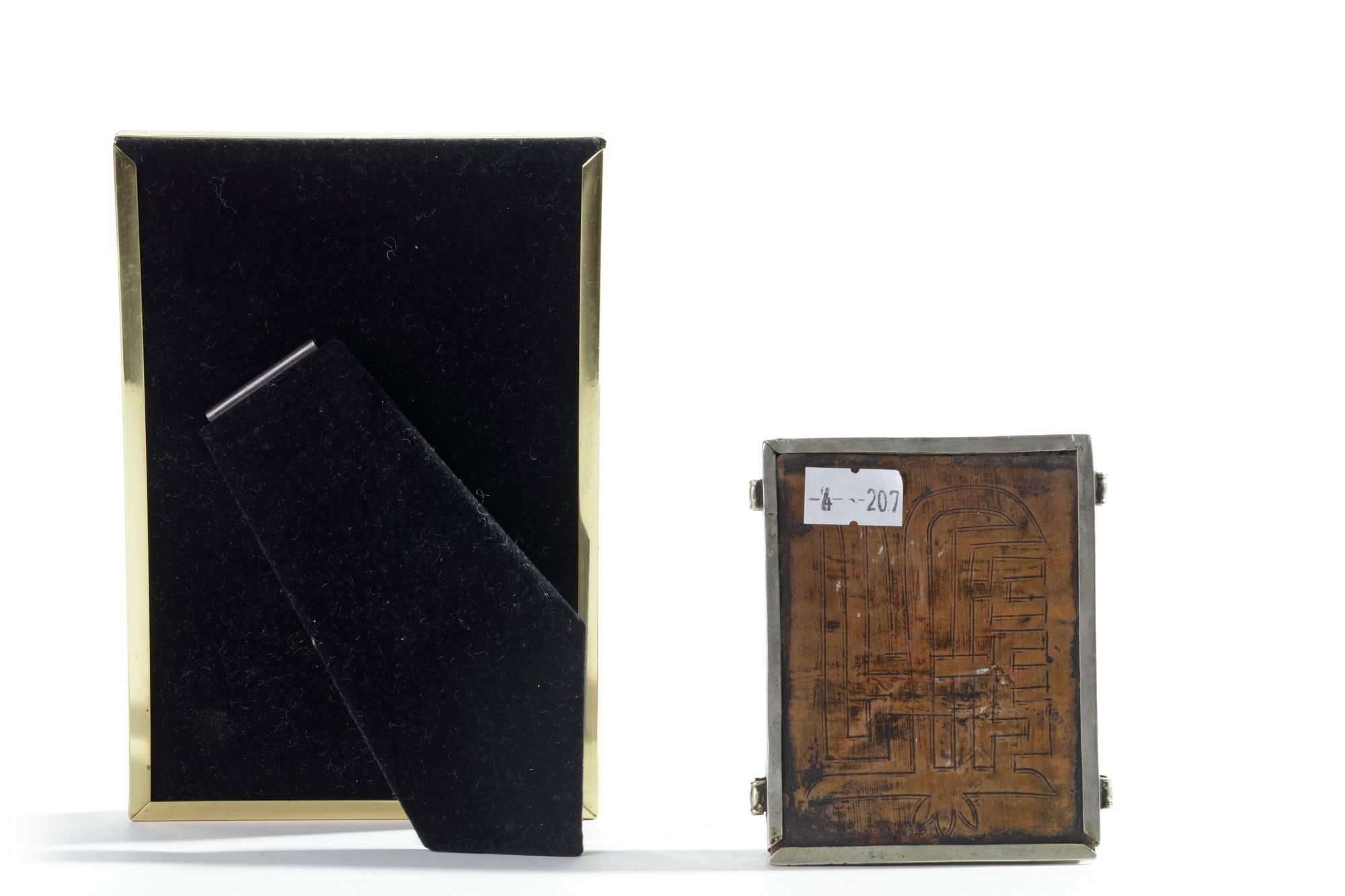 The first is a Tsagli painting of Palden Lhamo holding a skull cup and riding on her mule. The painting rests within its original white-metal amulet box, the copper backplate is inscribed with a lanca character. The second is a Tsagli painting of a six-armed Mahakala holding various in each arm, framed and glazed.