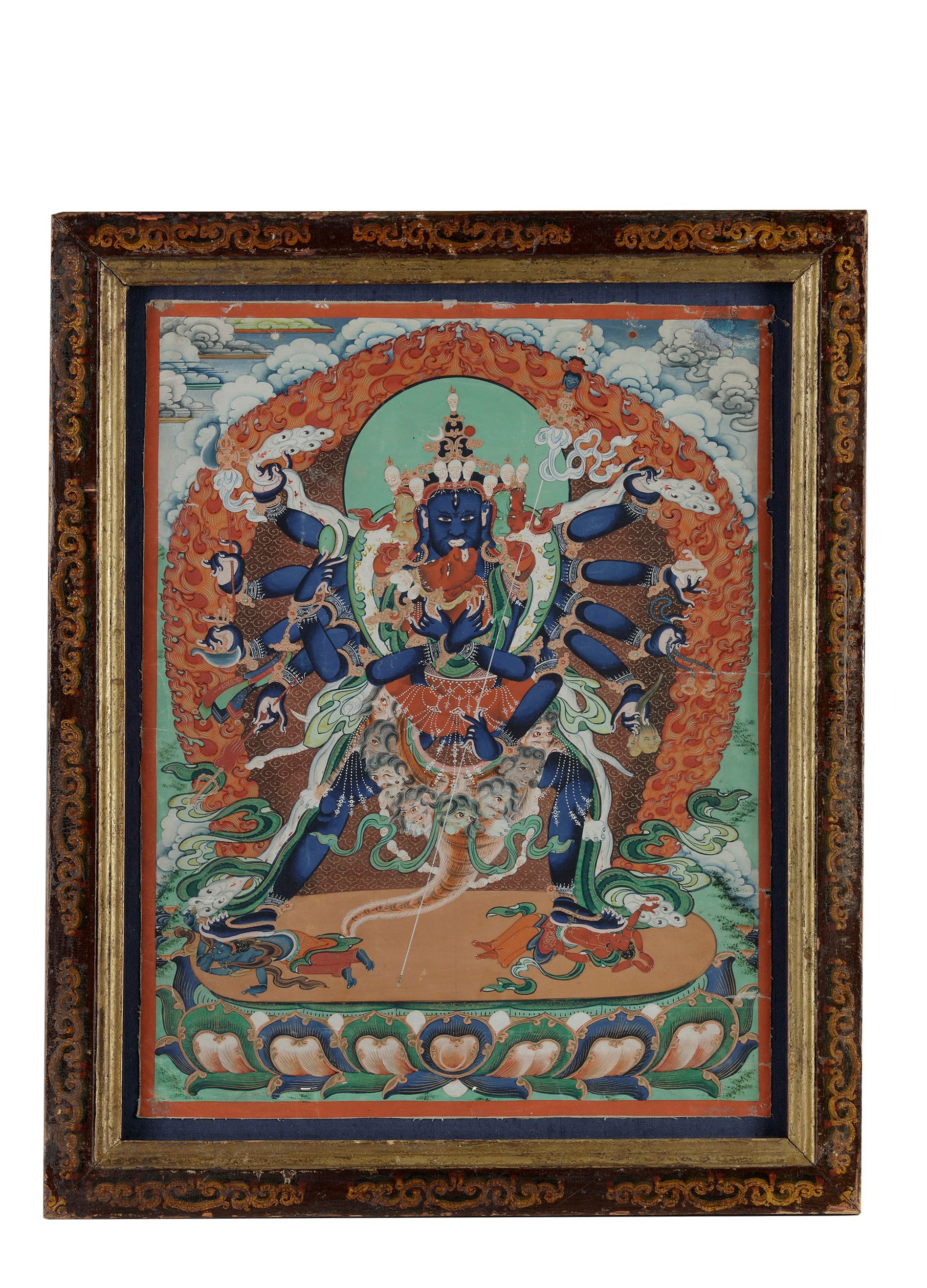 Catalogue notes: Dharmapala Yamantaka is one of the defenders of the Buddhist faith. The literal translation of his name is 'the exterminator of the lord of death Yama'.