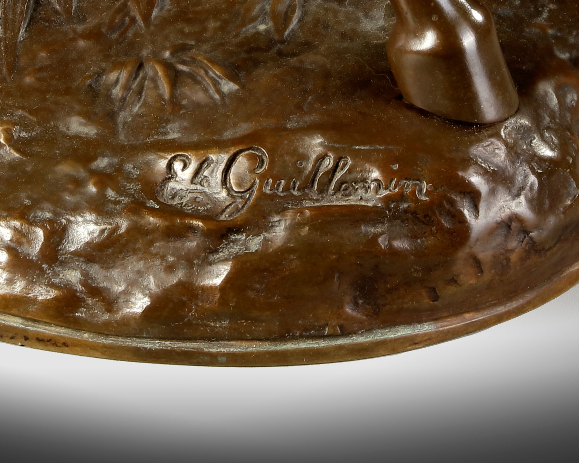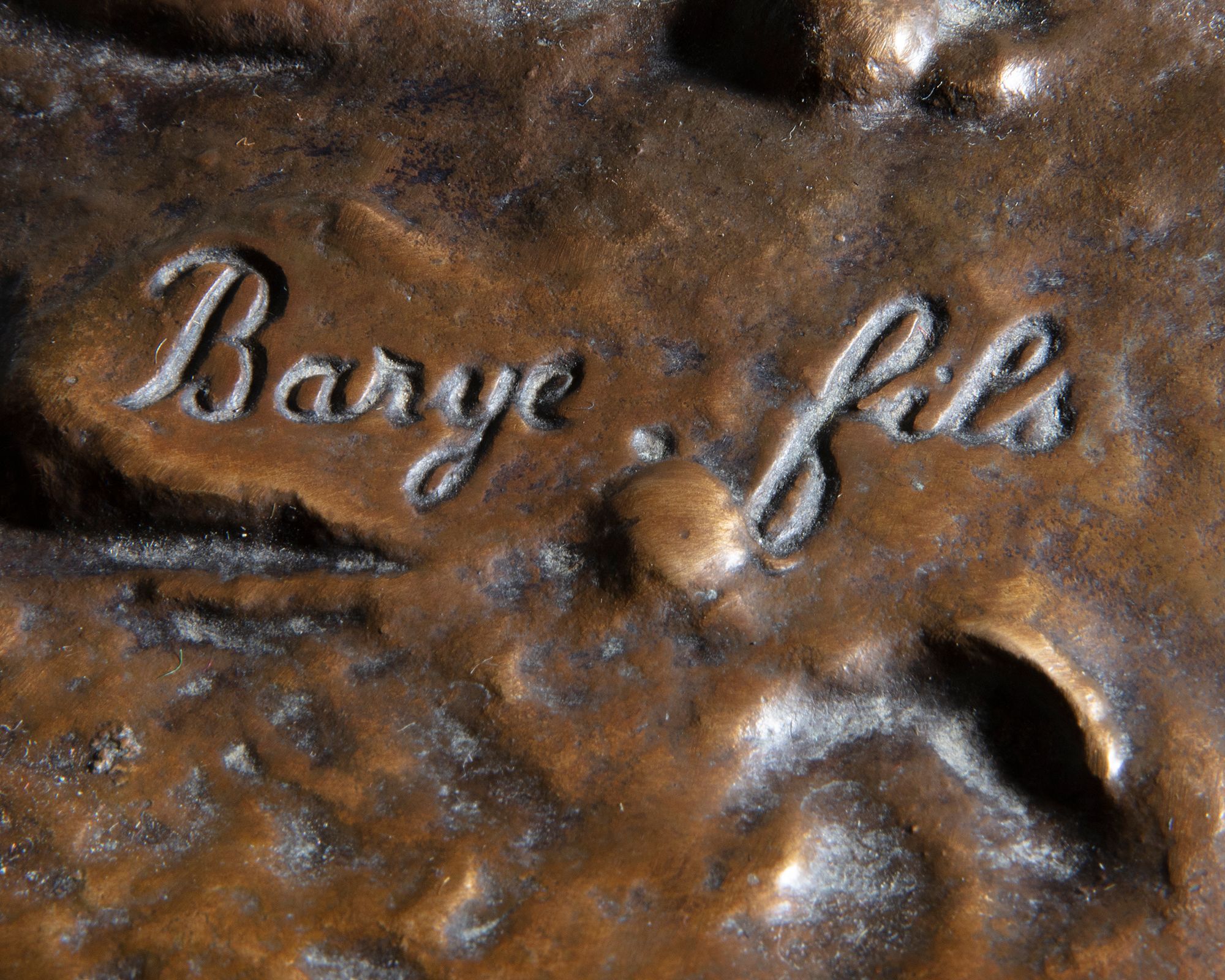 This work is considered to have been produced jointly by the two sculptors, namely Alfred Barye and Emile Guillemin. On the base two signatures of the two sculptors with the stamp of the founder. This sculpture is made by using the 'lost-wax technique'. H 58 cm. W 45 cm.