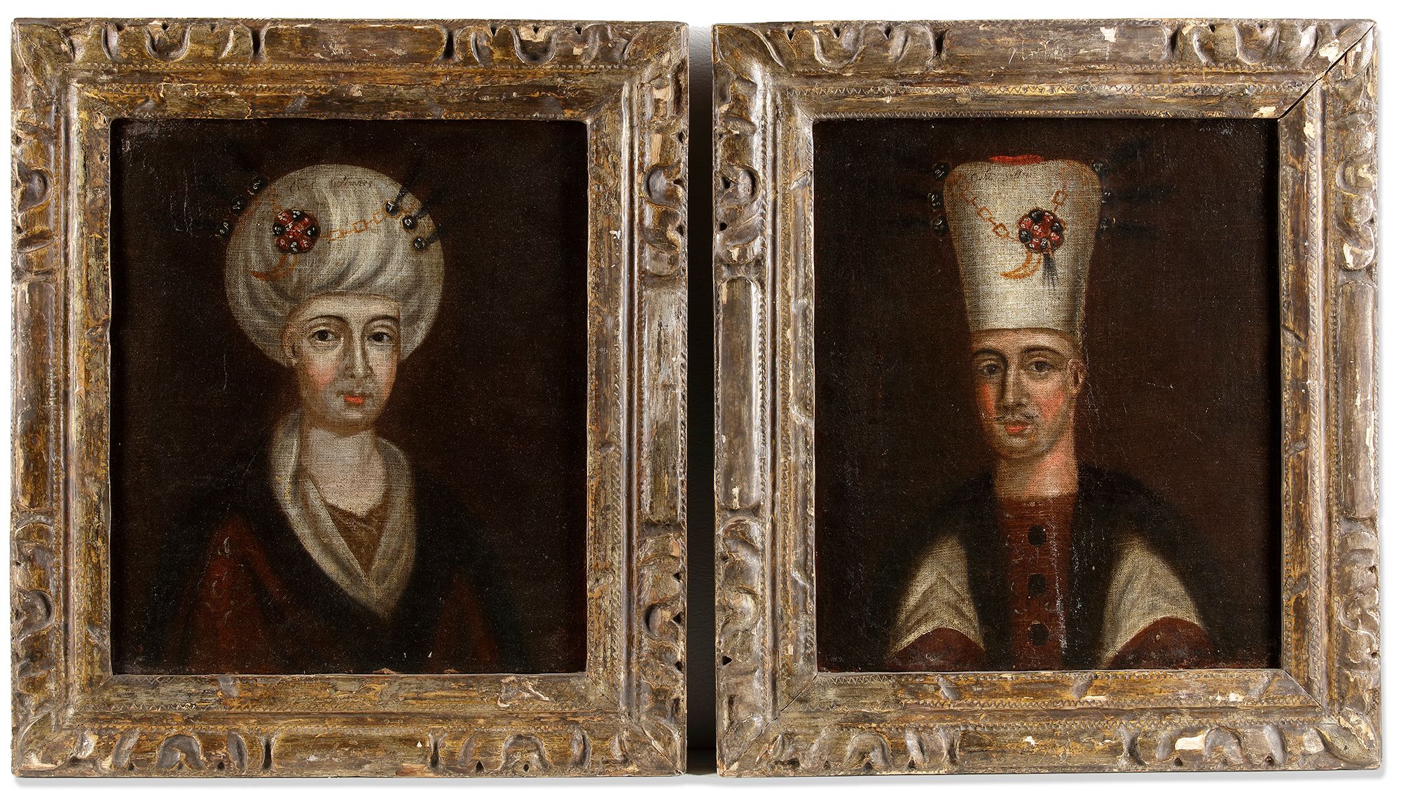 French school. Portrait of a man with a turban. Portrait of a man with a hat. On canvas. 37 by 32 cm.