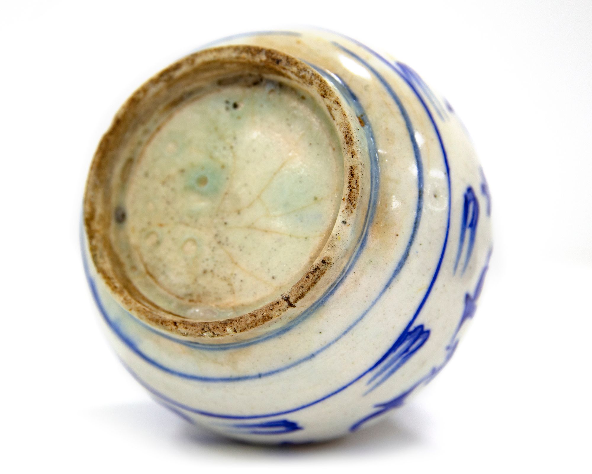 A SAFAVID RED AND BLUE KIRMAN POTTERY QALYAN BASE (WATER PIPE), PERSIA, 17TH CENTURY
