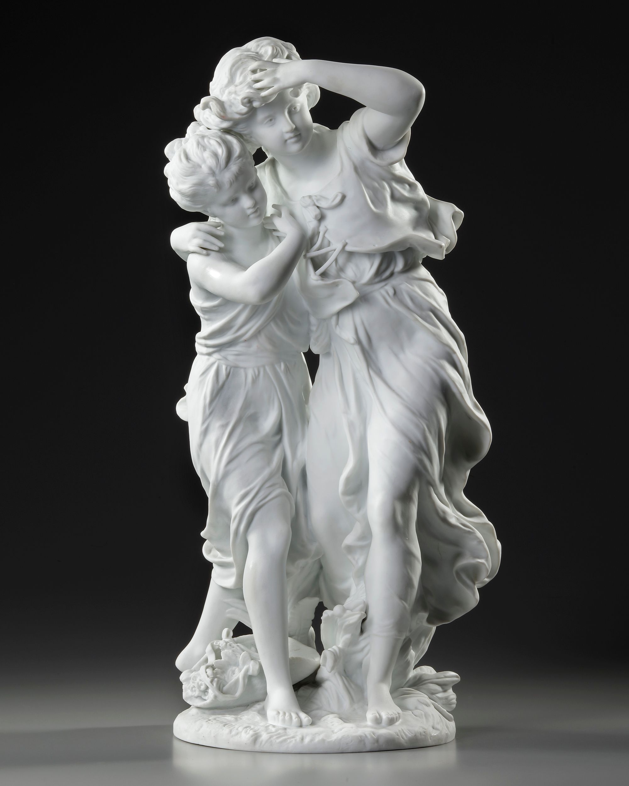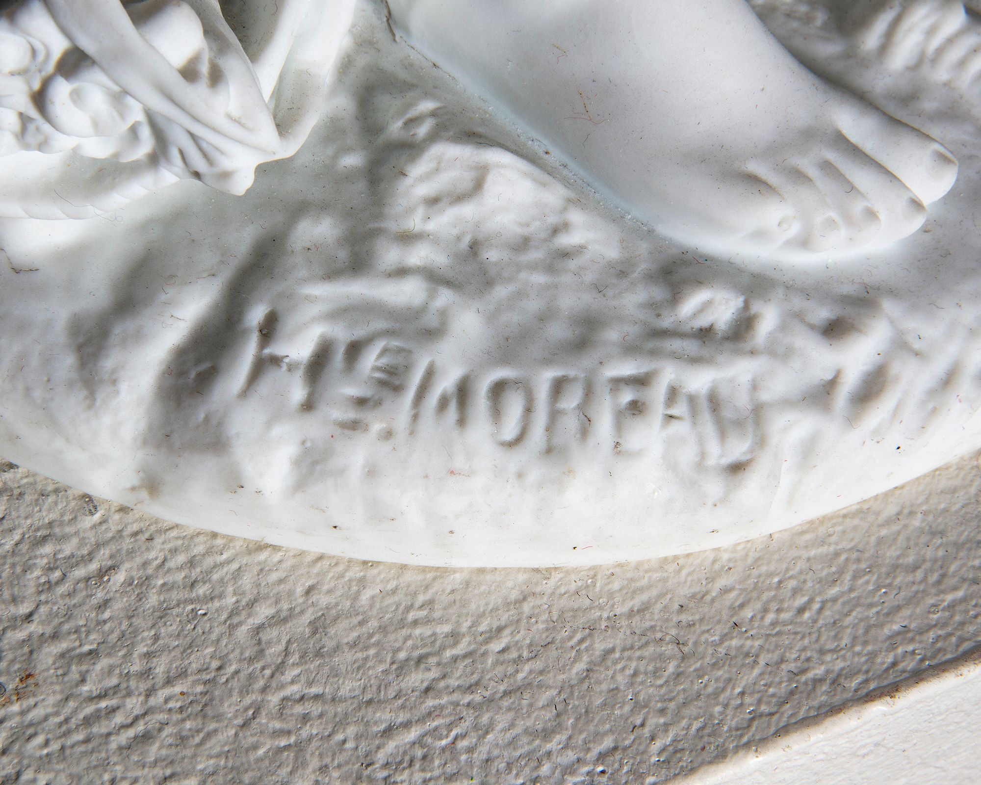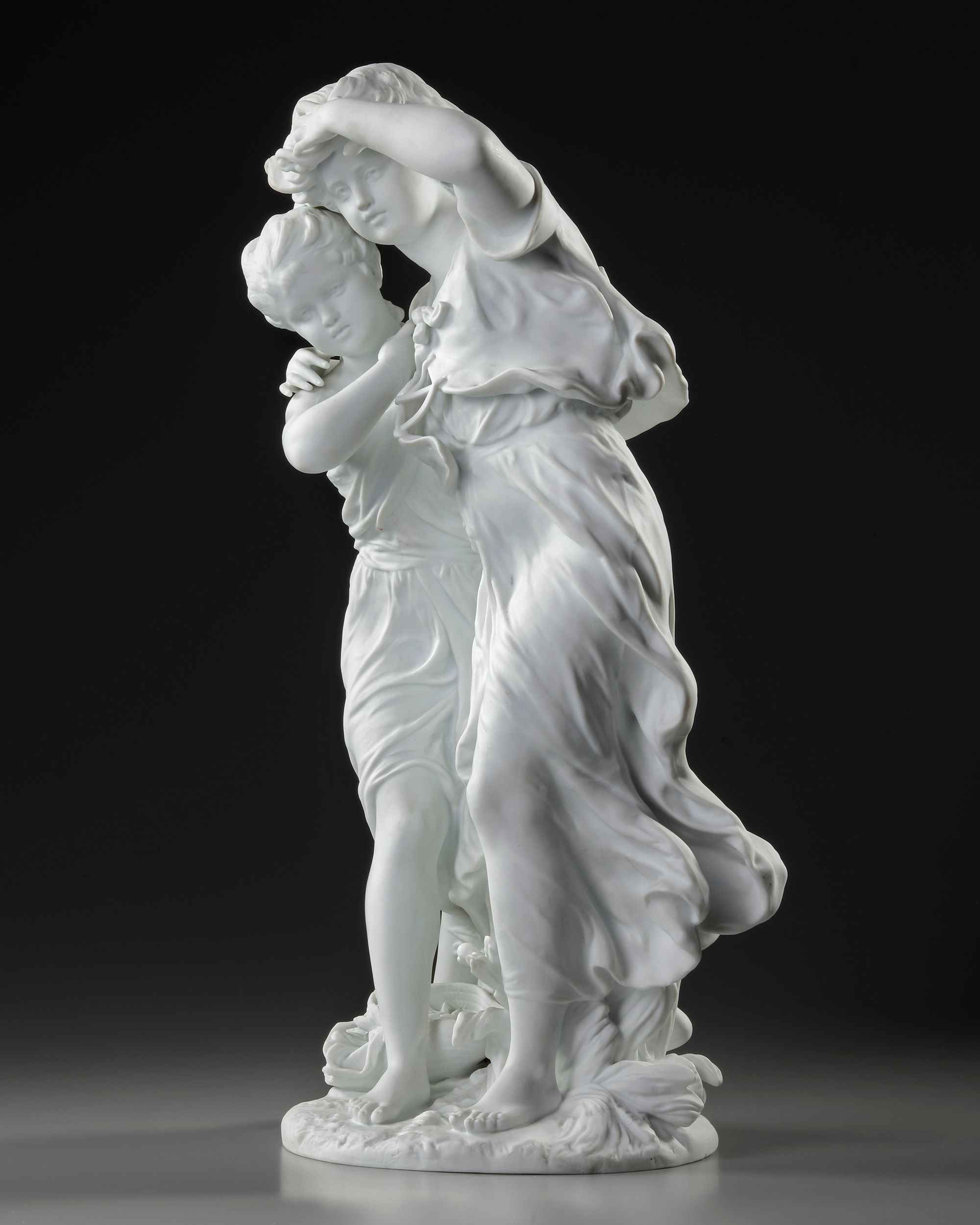 Depicting two young persons. Signed by Moreau (1834-1917). Very good condition H 47 cm. Base D 19 cm.