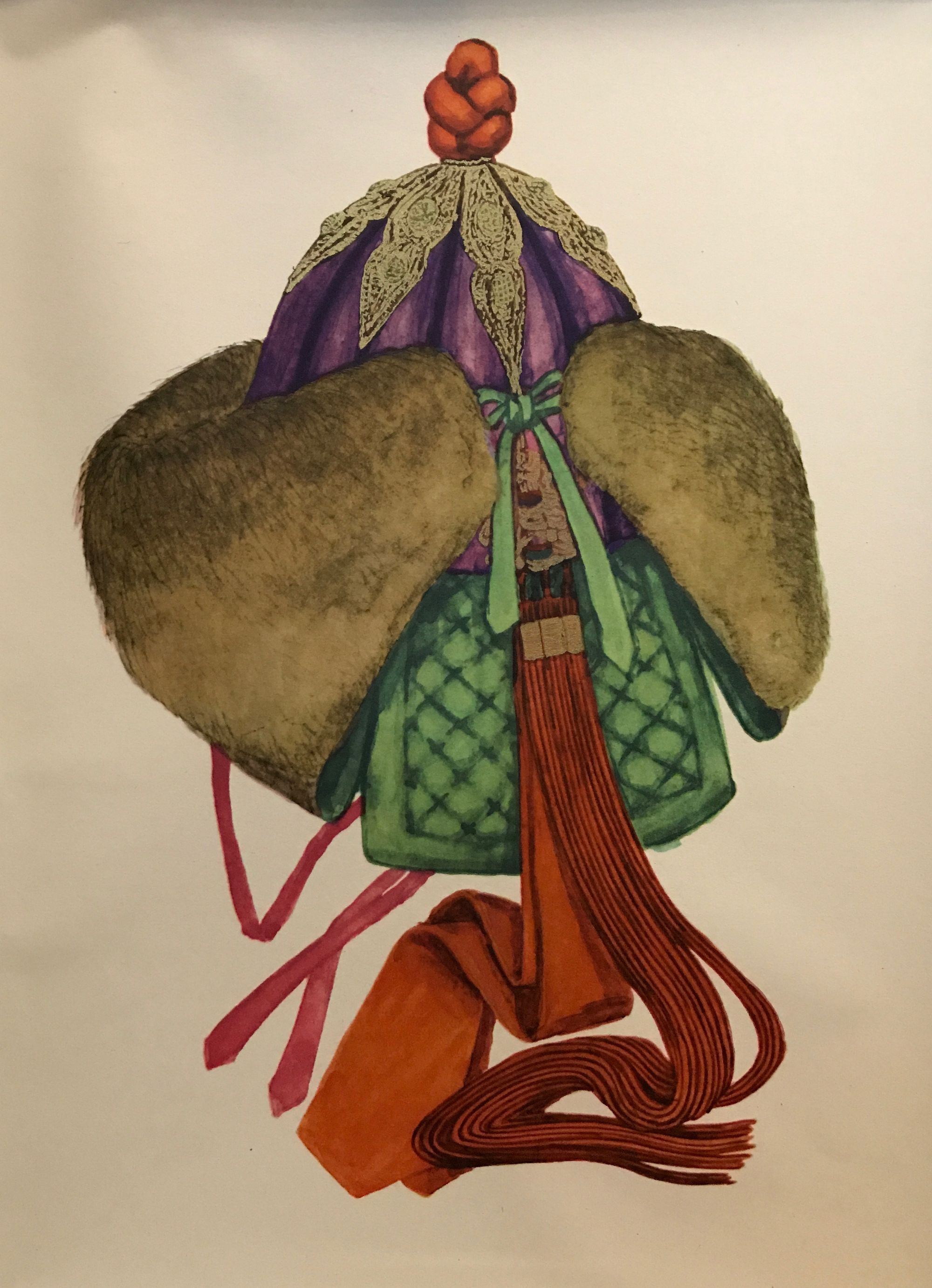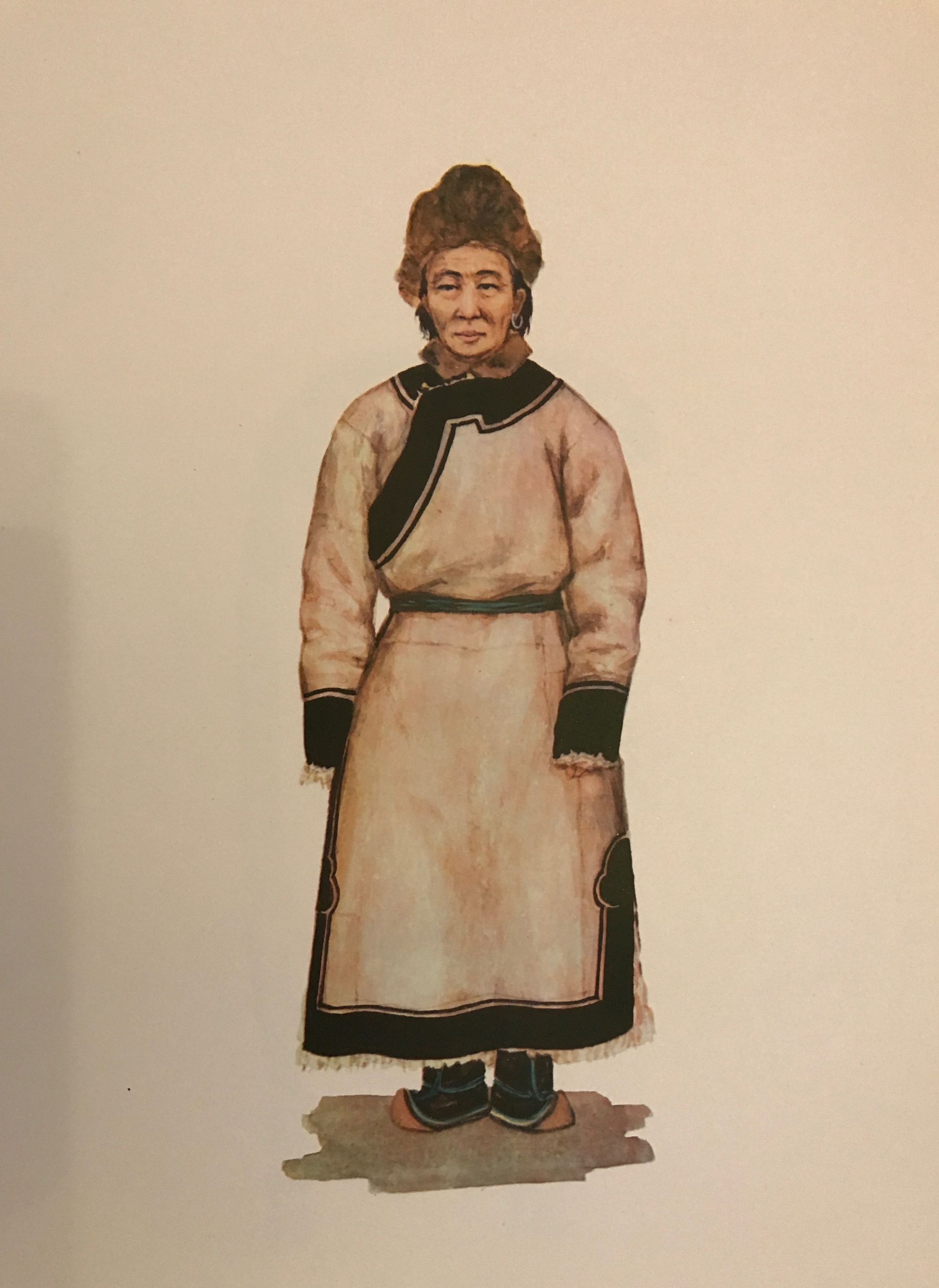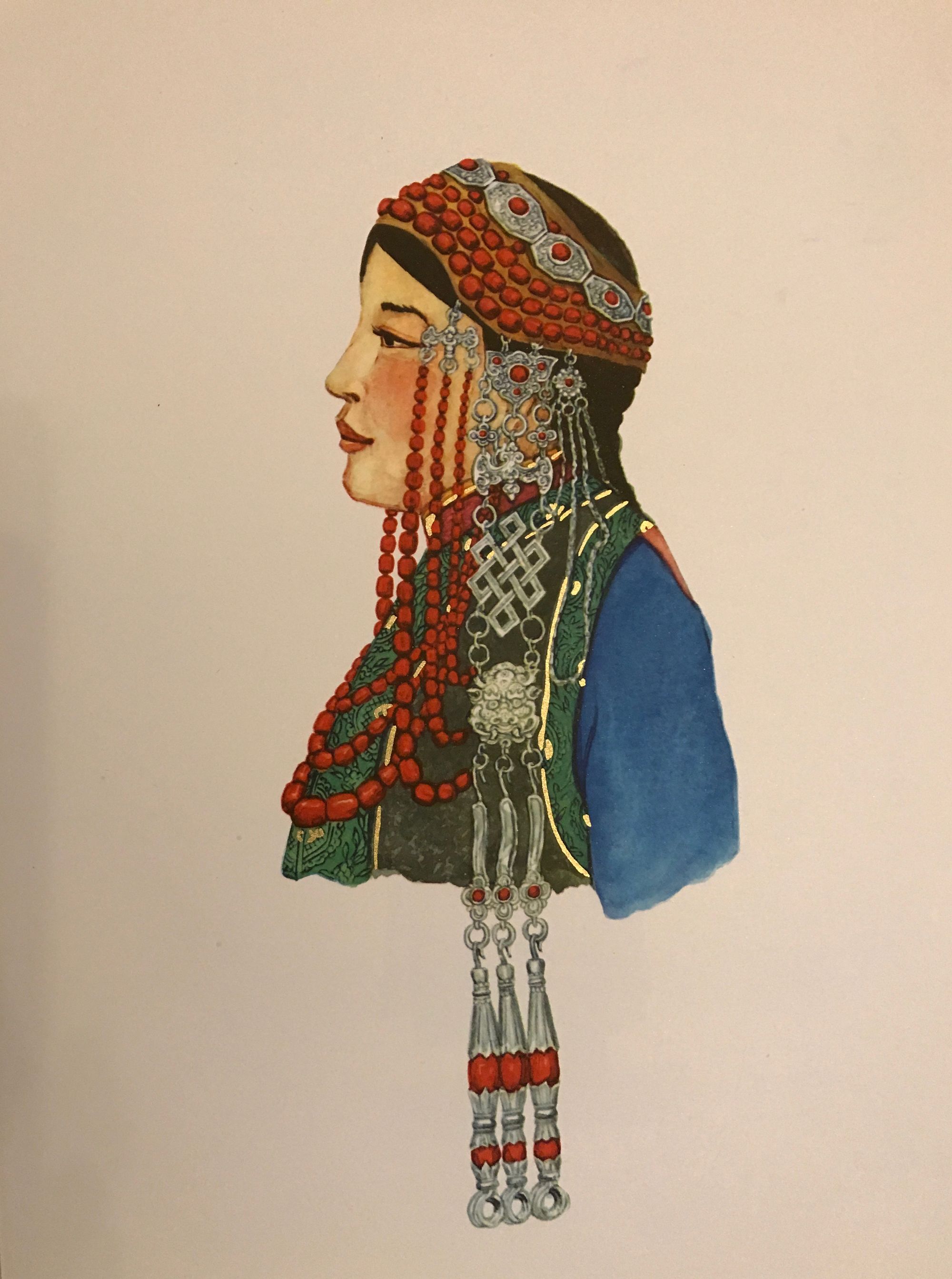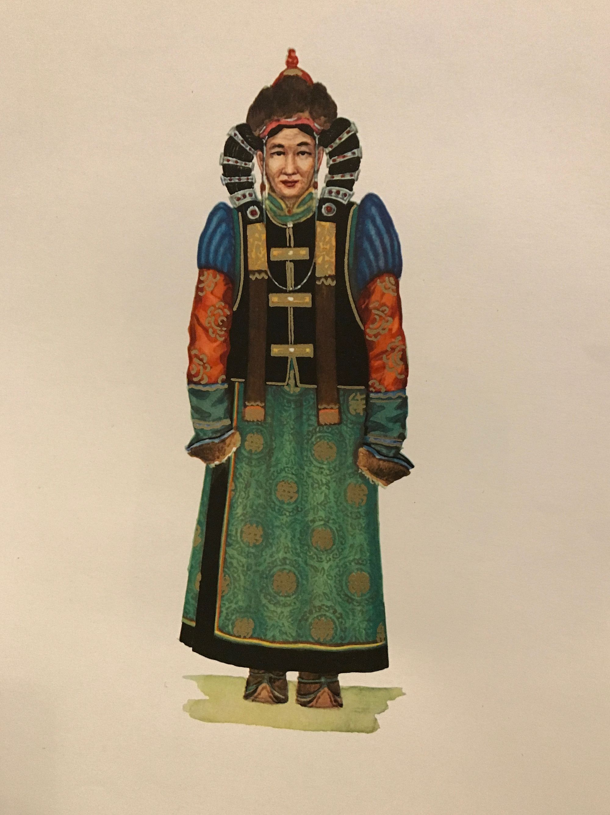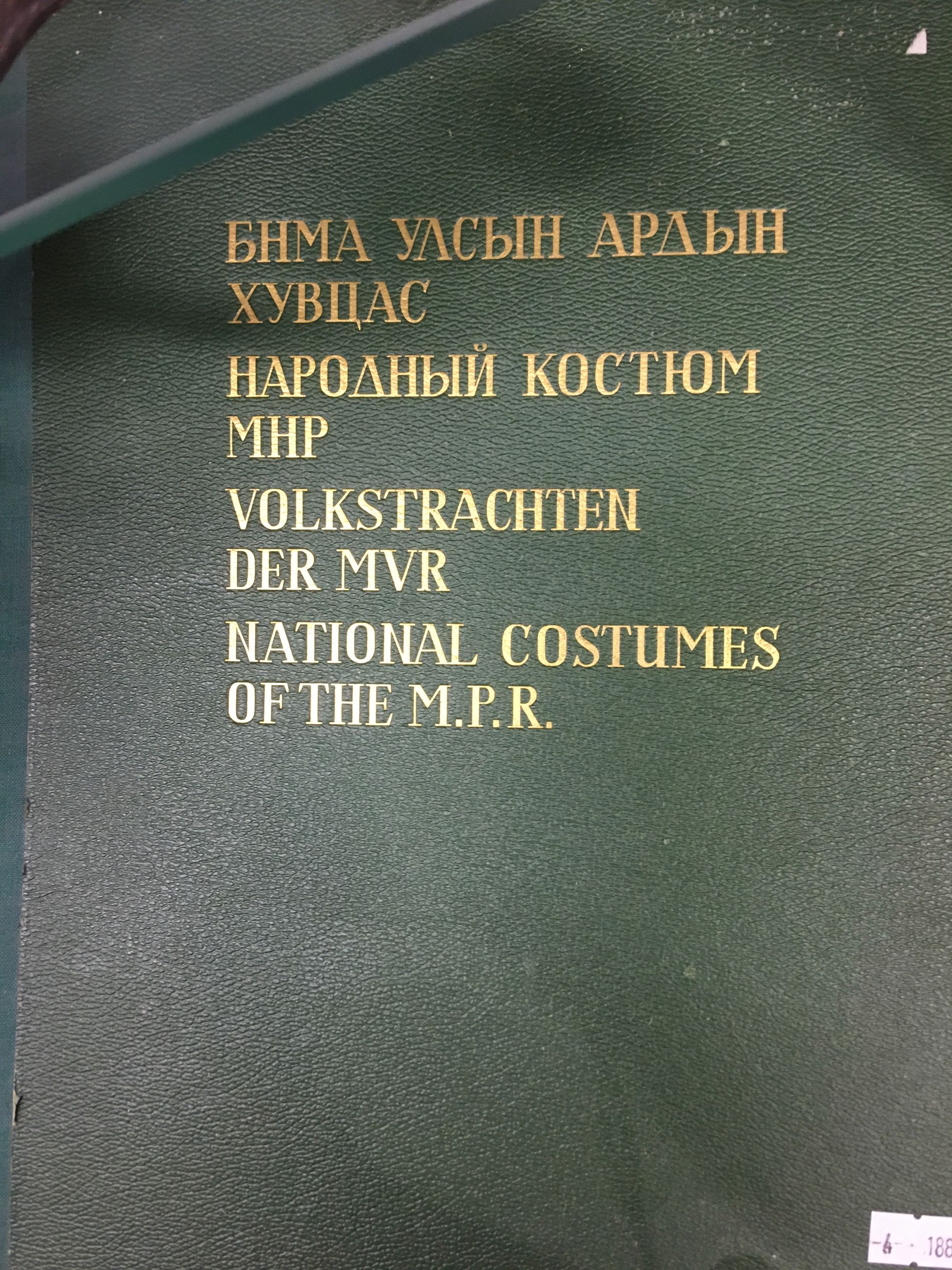 U. Yadamsuren, 'National Costumes of the M.P.R.', Ulan-Bataar: State Publishing House, 1967. Accompanied with 97 colour prints depicting Mongolian clothing and accessories, six of which mounted in paper. Cloth and paper slipcase.