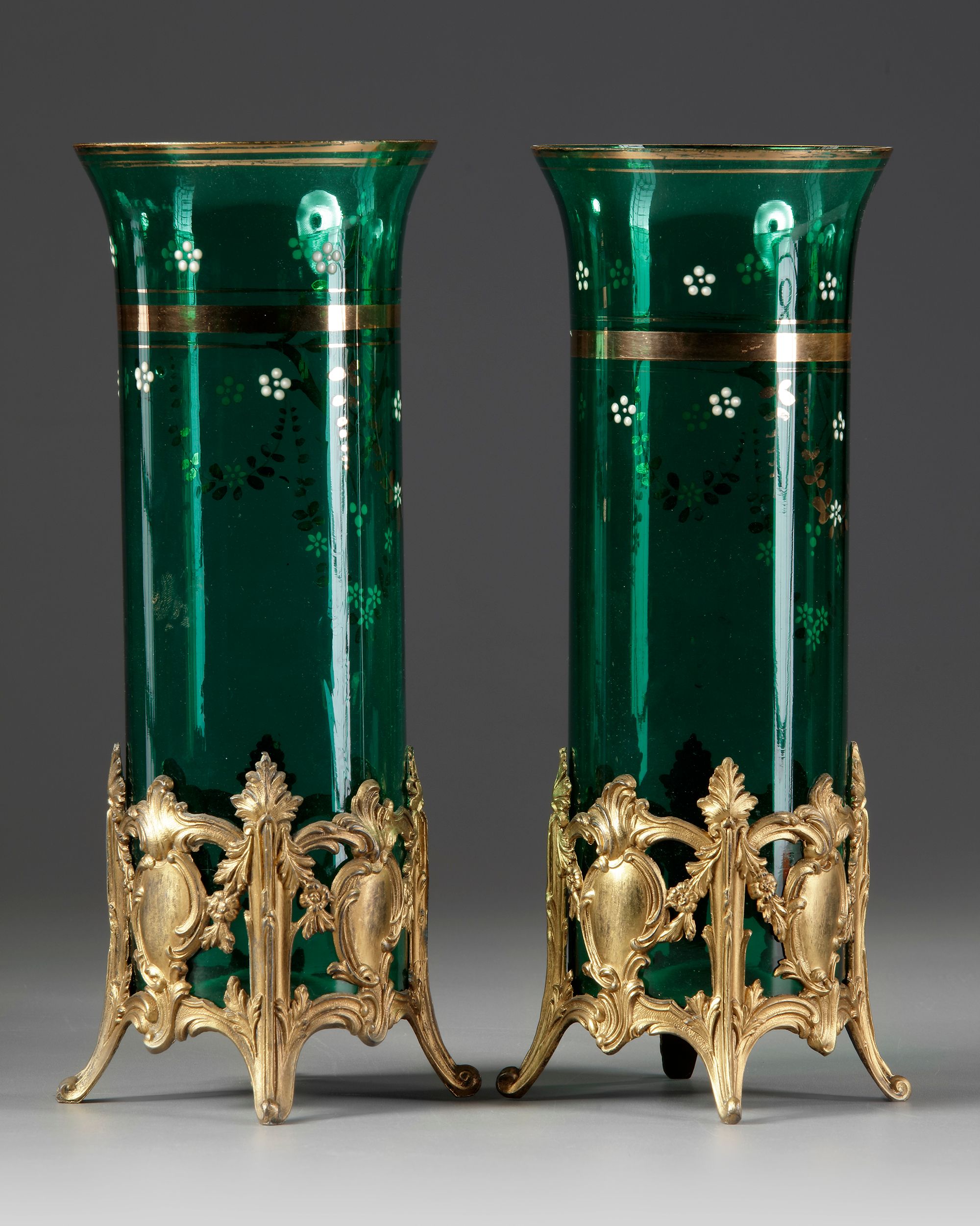Metal gilt base, Art Nouveau style. Late 19th century, gilt decors. H 26.5 cm.