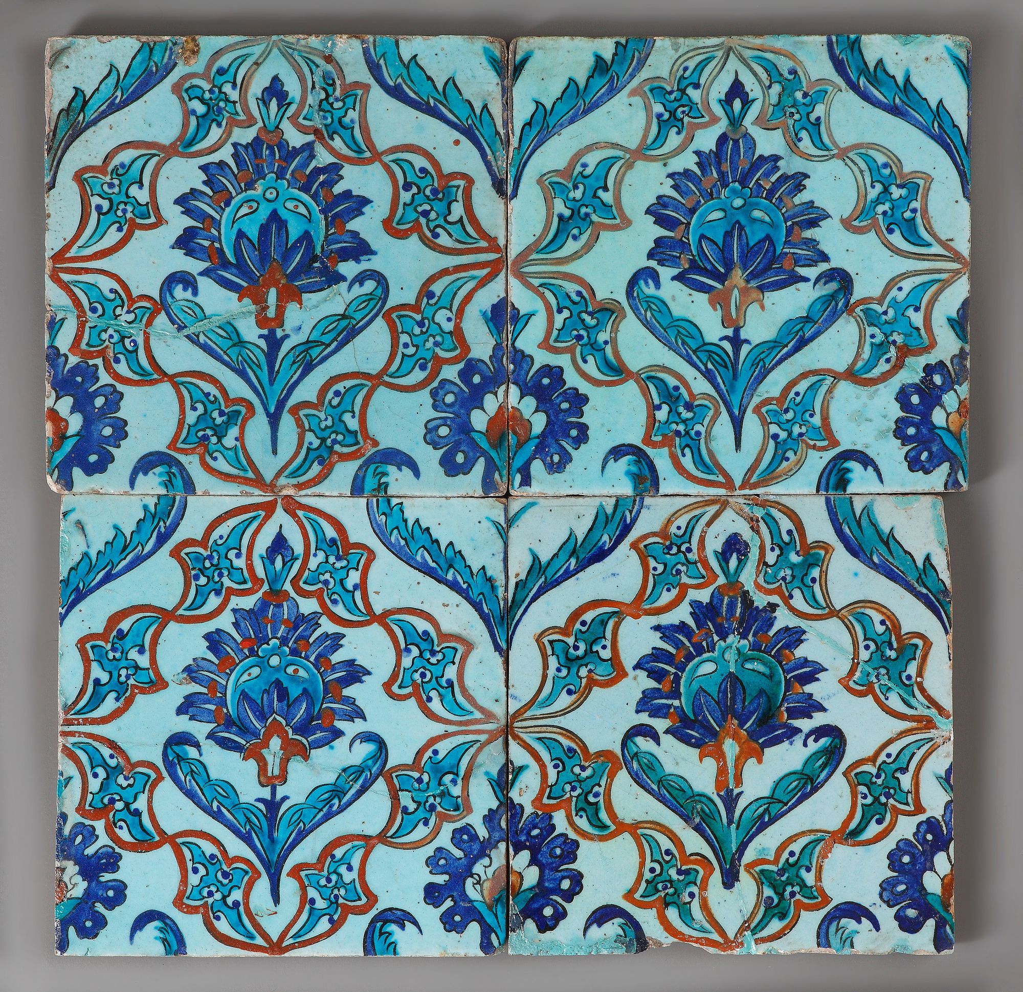 أربع بلاطات جدارية مزخرفة تعود للقرن السابع-الثامن عشر ،عثمانية إزنك