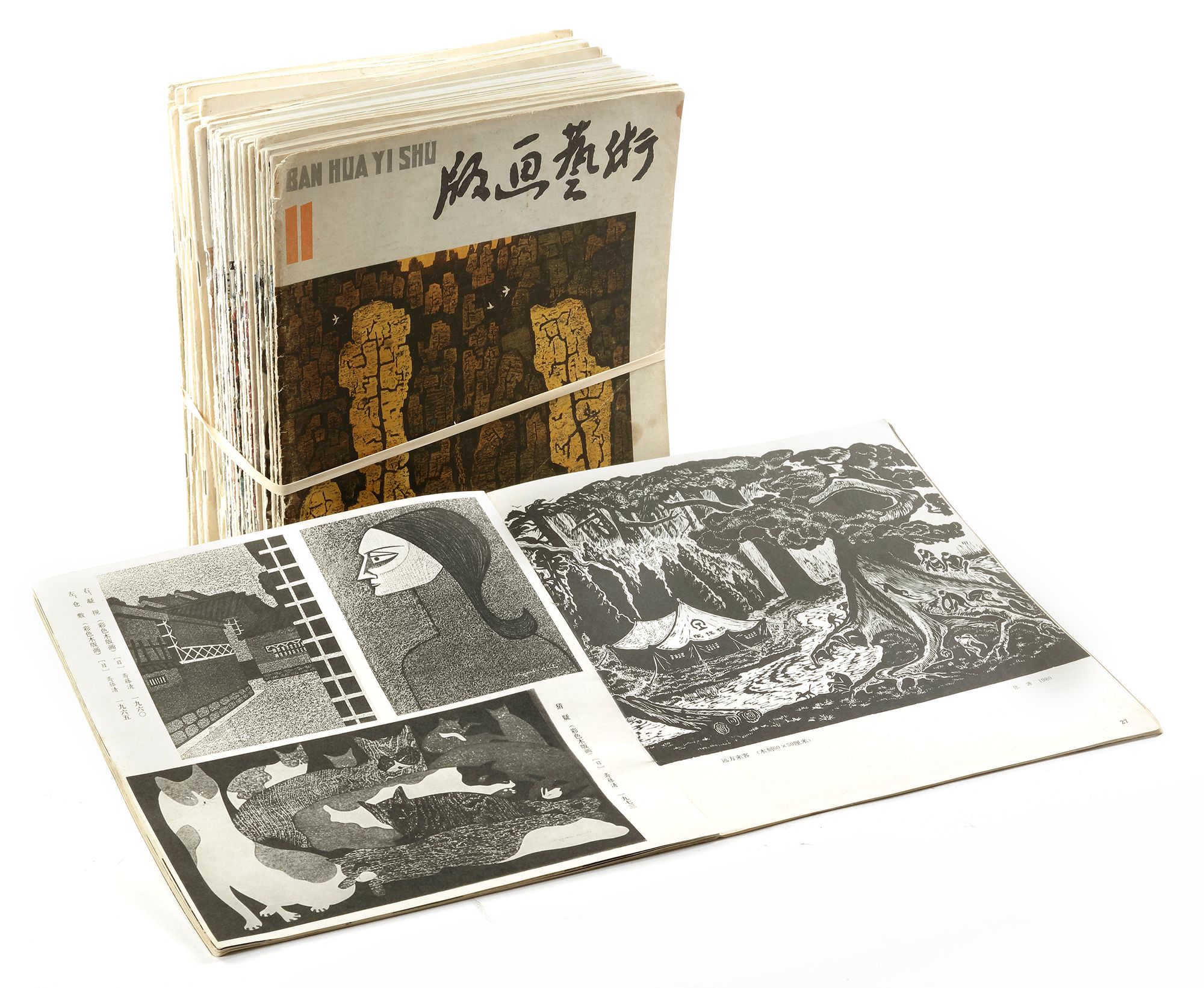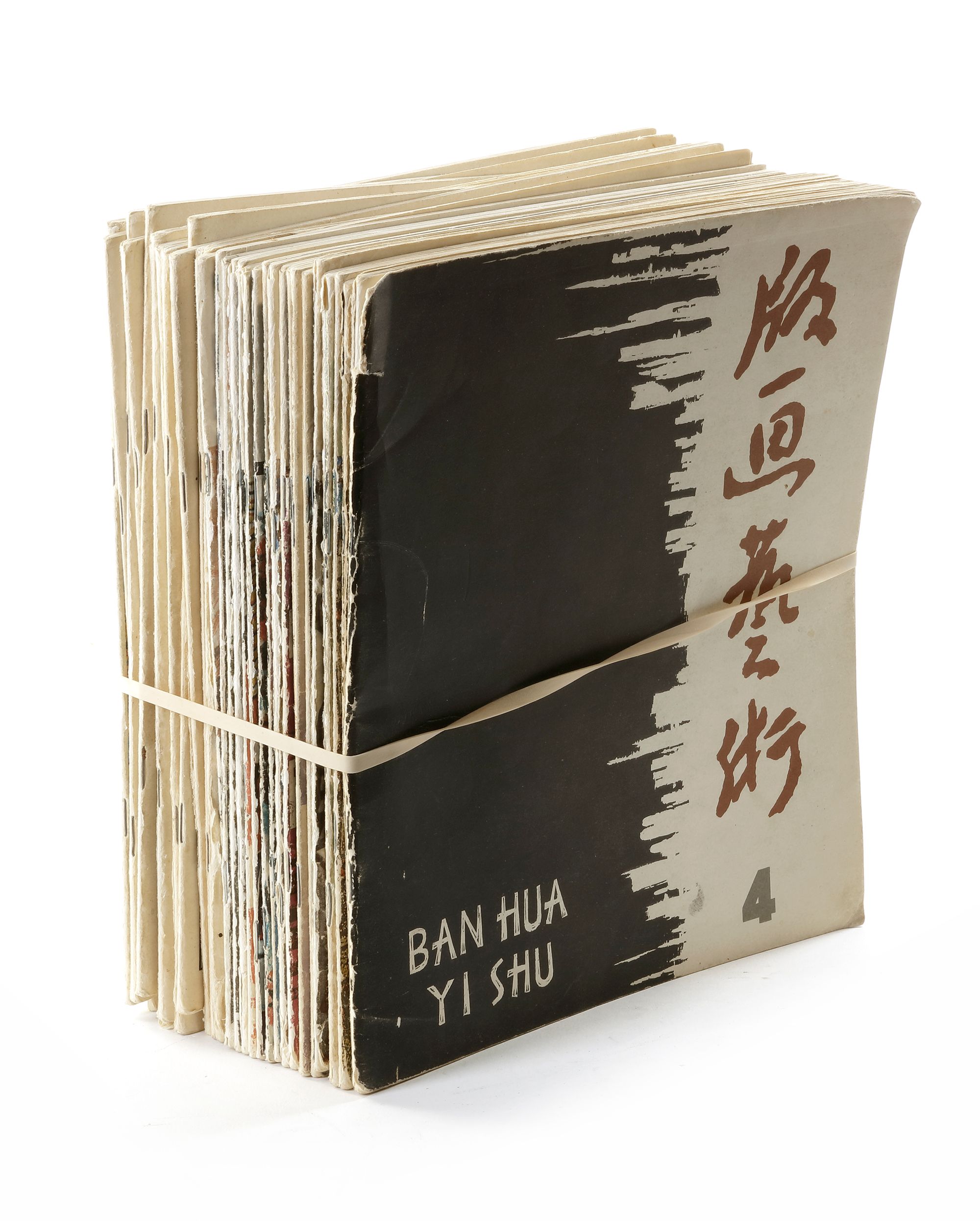 'Ban Hua Shi Jie (Periodical of Chinese Woodblock printing) 13 Volumes Beijing: Ren min mei shu chu ban she, 1983 onwards. First edition. Volumes: 6, 8, 10, 11, 13, 14,16-21, 23. Illustrated in colour and black and white. Text in Chinese. Volume 20 also entitled Prints World, Volumes 21 & 23 entitled Graphic World. Ban Hua Yi Shu (Periodical of Chinese Woodblock printing) 19 Volumes Shanghai: Ren min mei shu chu ban she , 1980 onwards. First edition. Volumes: 4, 11, 14, 15,18, 19, 22-32, 36, 40. Illustrated in color and black and white. Text in Chinese. A scarce collection of periodicals on the subject of Chinese woodblock printing."
