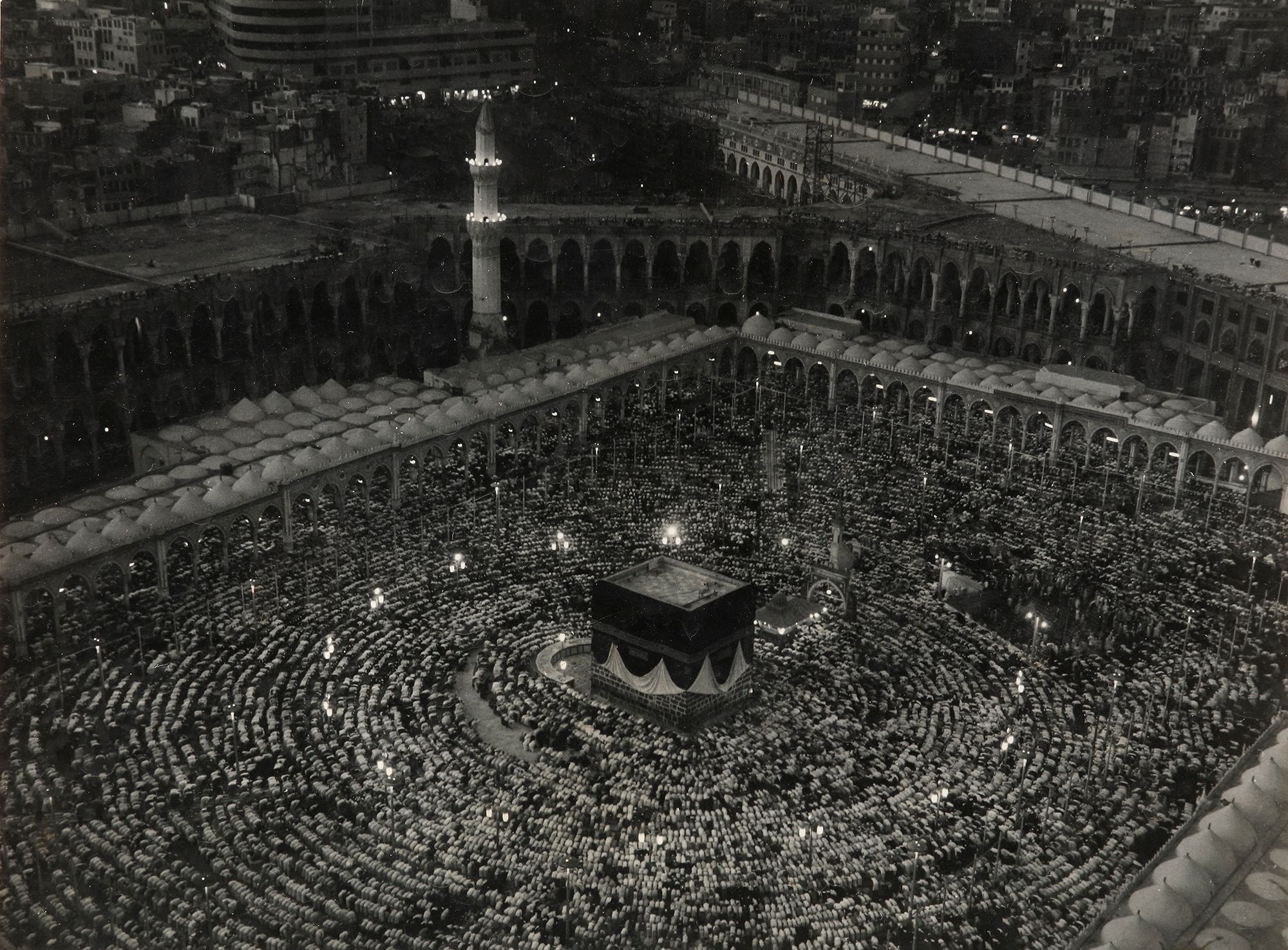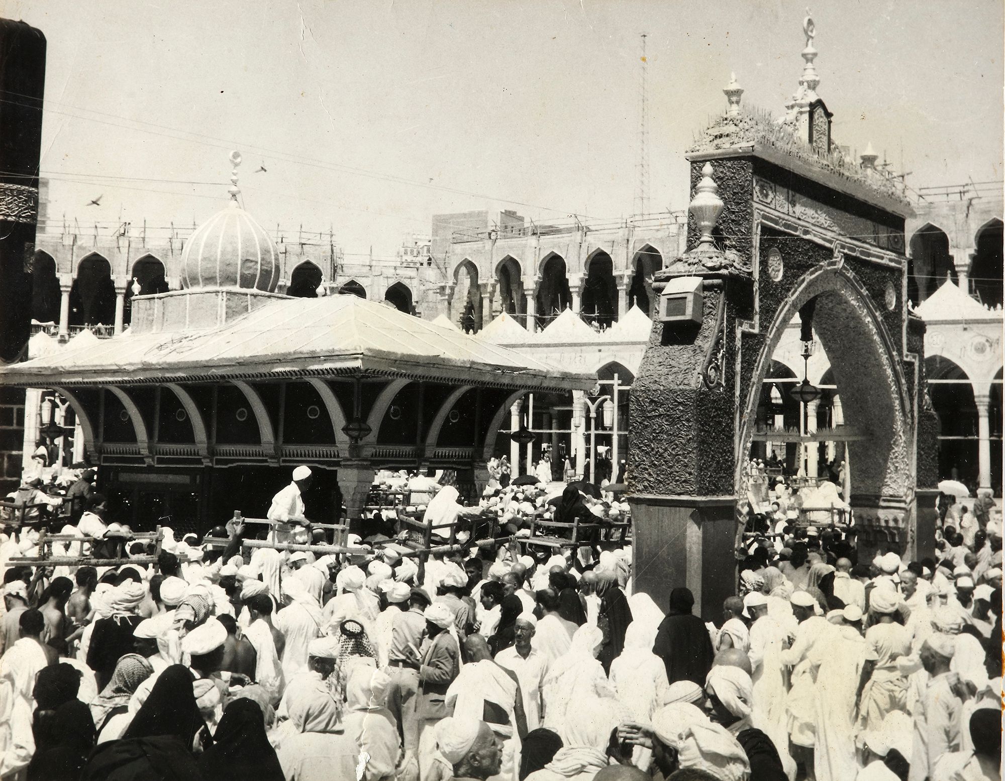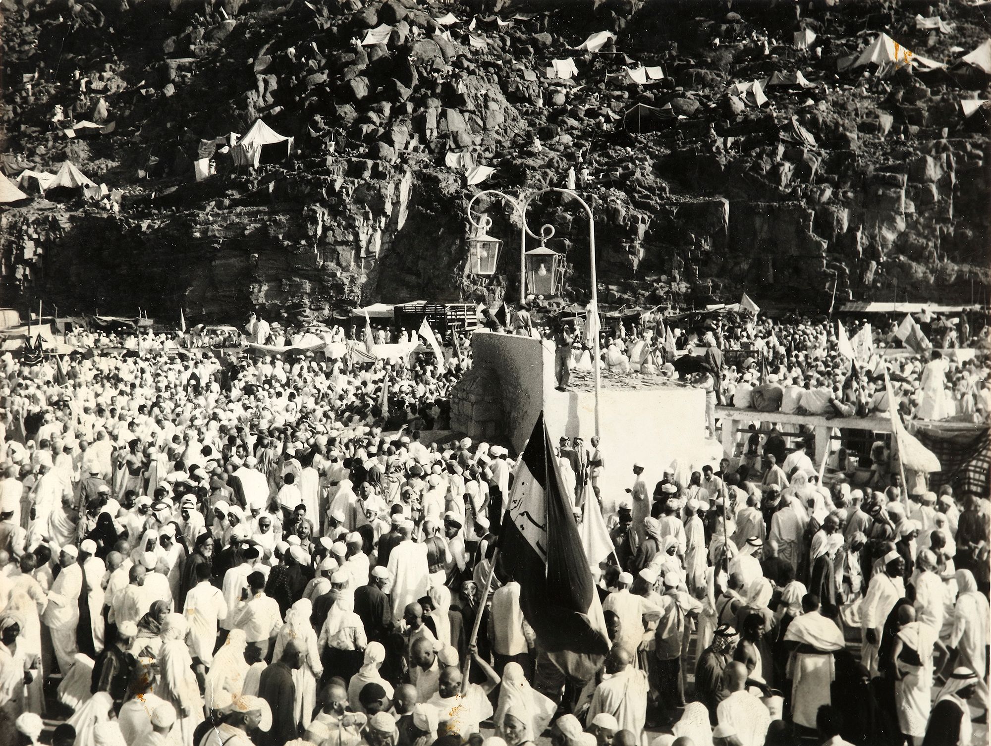 These photos show the sacred places and the rituals of the Hajj pilgrimage to Mecca. Like the ritual of Tawaf, walking seven times counterclockwise around the Kaaba, of the Grand Mosque in Mecca during its expansion, of pilgrims walking between Safa and Marwa, and ‘stoning of the Devil’. Day of Arafat, pilgrims wearing Ihram clothes, to perform their duty. Heading to Mina and staying (Tarwiya day), and also of visiting the Grand mosque of Prophet Mohammed, Pilgrims entering Mecca through on of the three gates (could by Alshiba gate) and other rituals. 18.5 by 23.5 cm. each