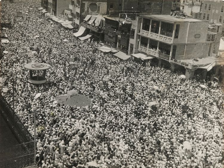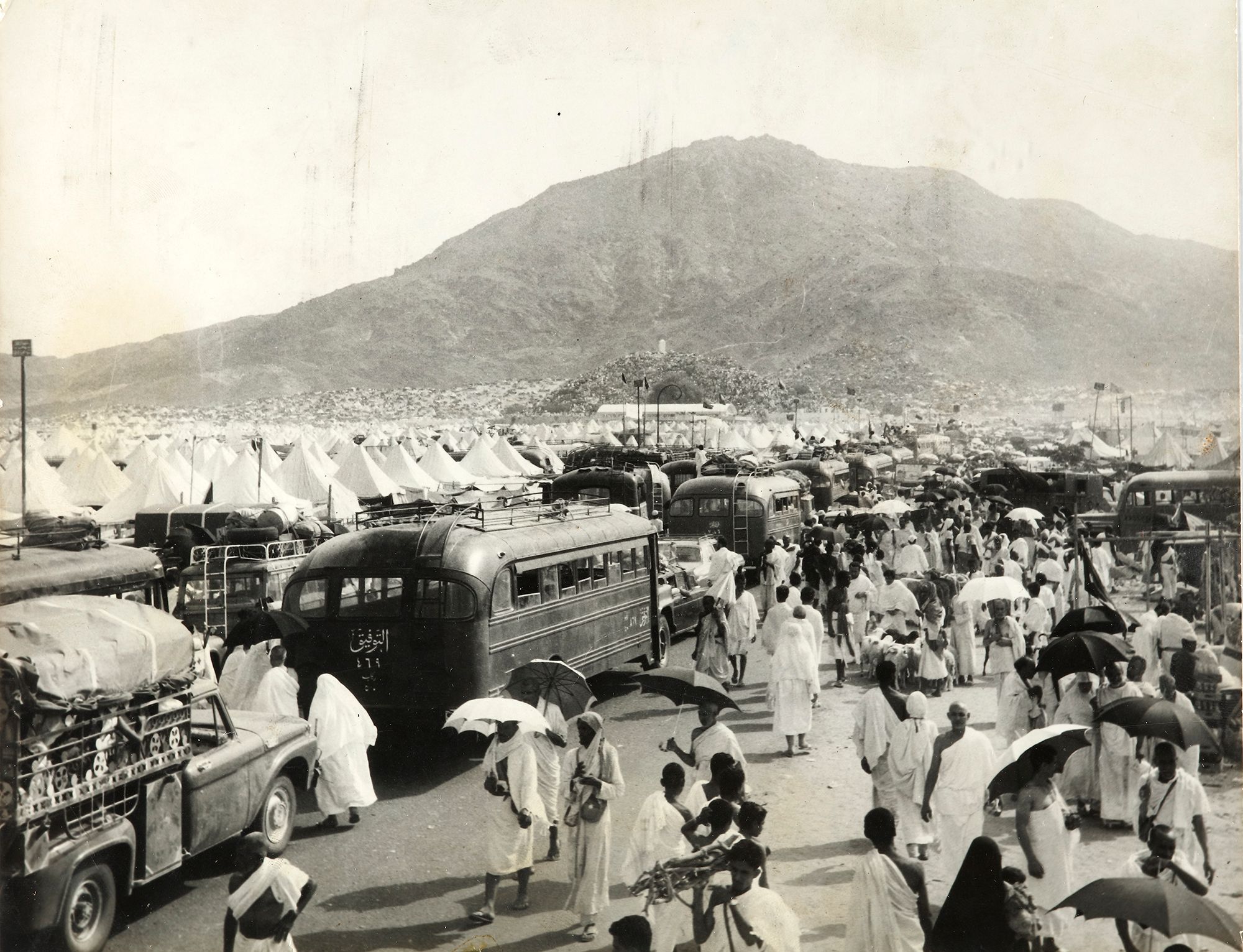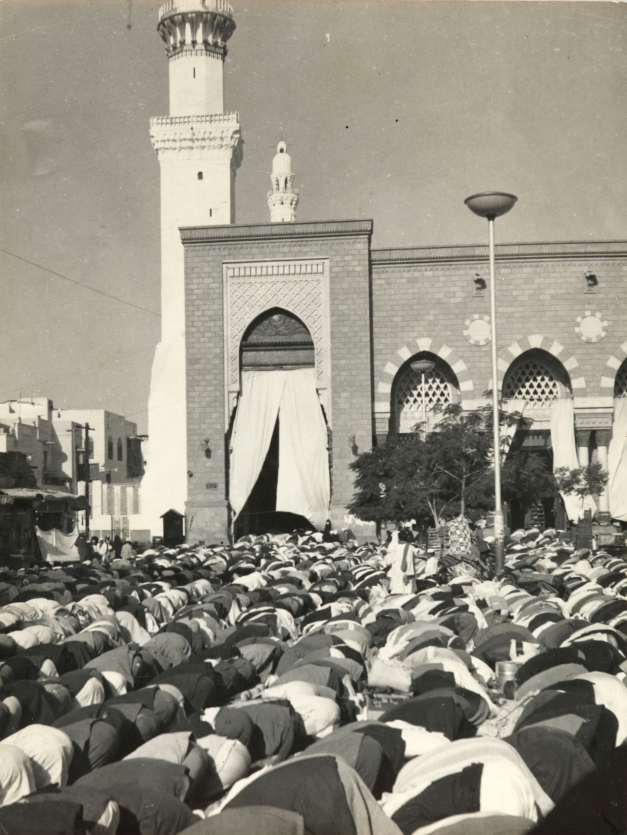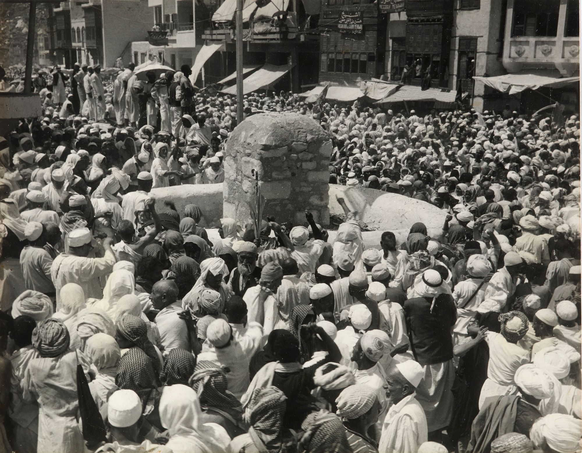 These photos show the sacred places and the rituals of the Hajj pilgrimage to Mecca. Like the ritual of Tawaf, walking seven times counterclockwise around the Kaaba, of the Grand Mosque in Mecca during its expansion, of pilgrims walking between Safa and Marwa, and ‘stoning of the Devil’. Day of Arafat, pilgrims wearing Ihram clothes, to perform their duty. Heading to Mina and staying (Tarwiya day), and also of visiting the Grand mosque of Prophet Mohammed, Pilgrims entering Mecca through on of the three gates (could by Alshiba gate) and other rituals. 18.5 by 23.5 cm. each