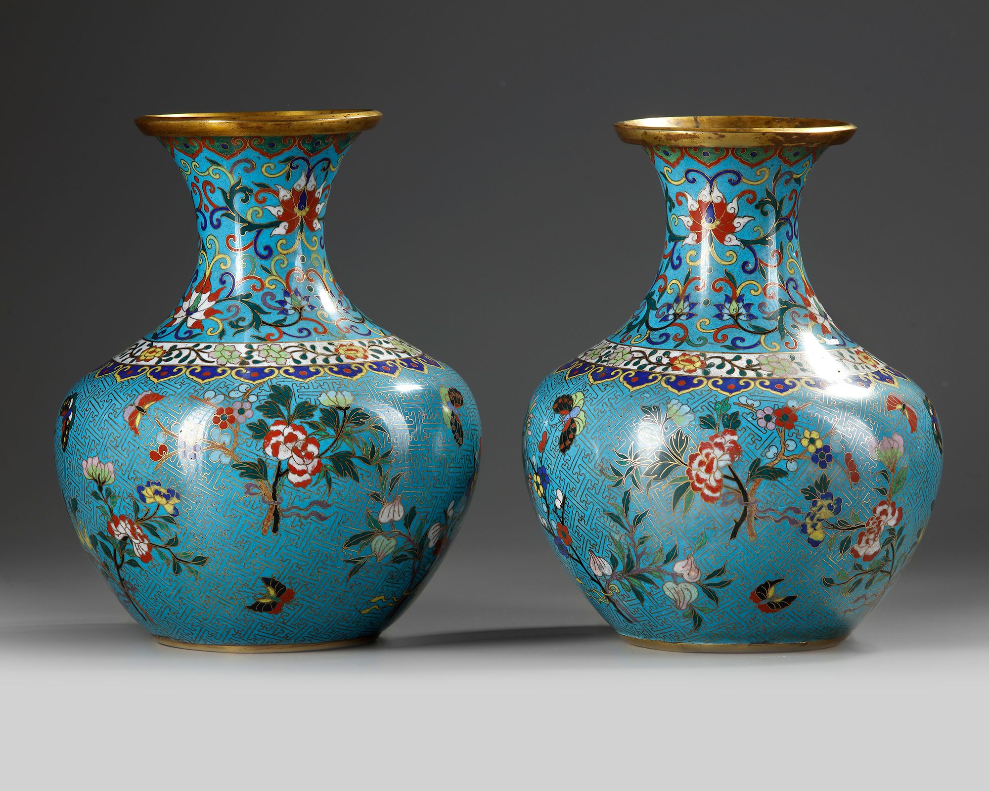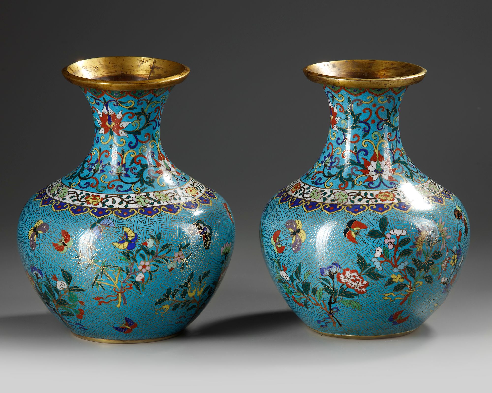 The vases are decorated and gilt with various kinds of flowers, a band of upright plantain leaves and Ruyi-heads.