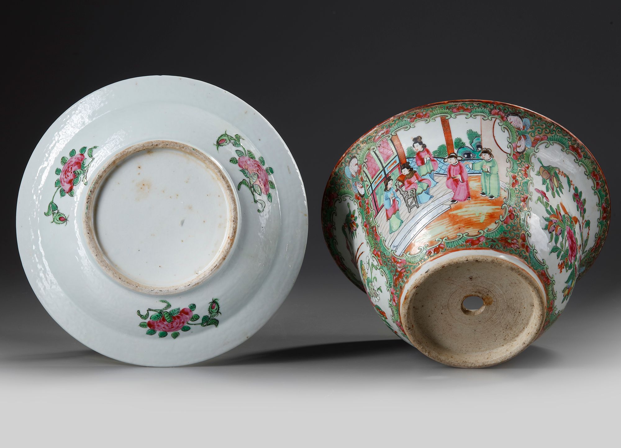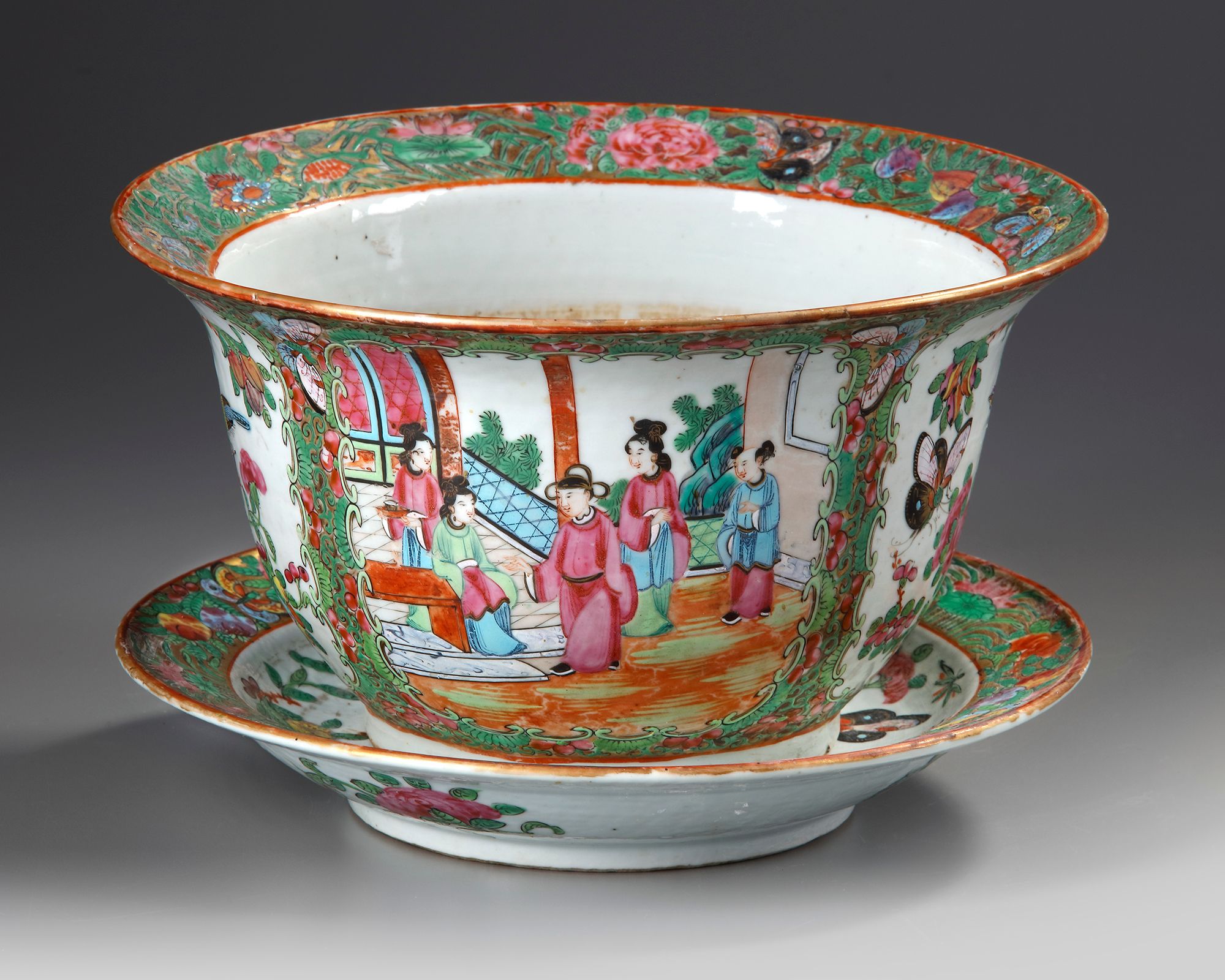 Decorated with different panels enclosing a family seated on a terrace.